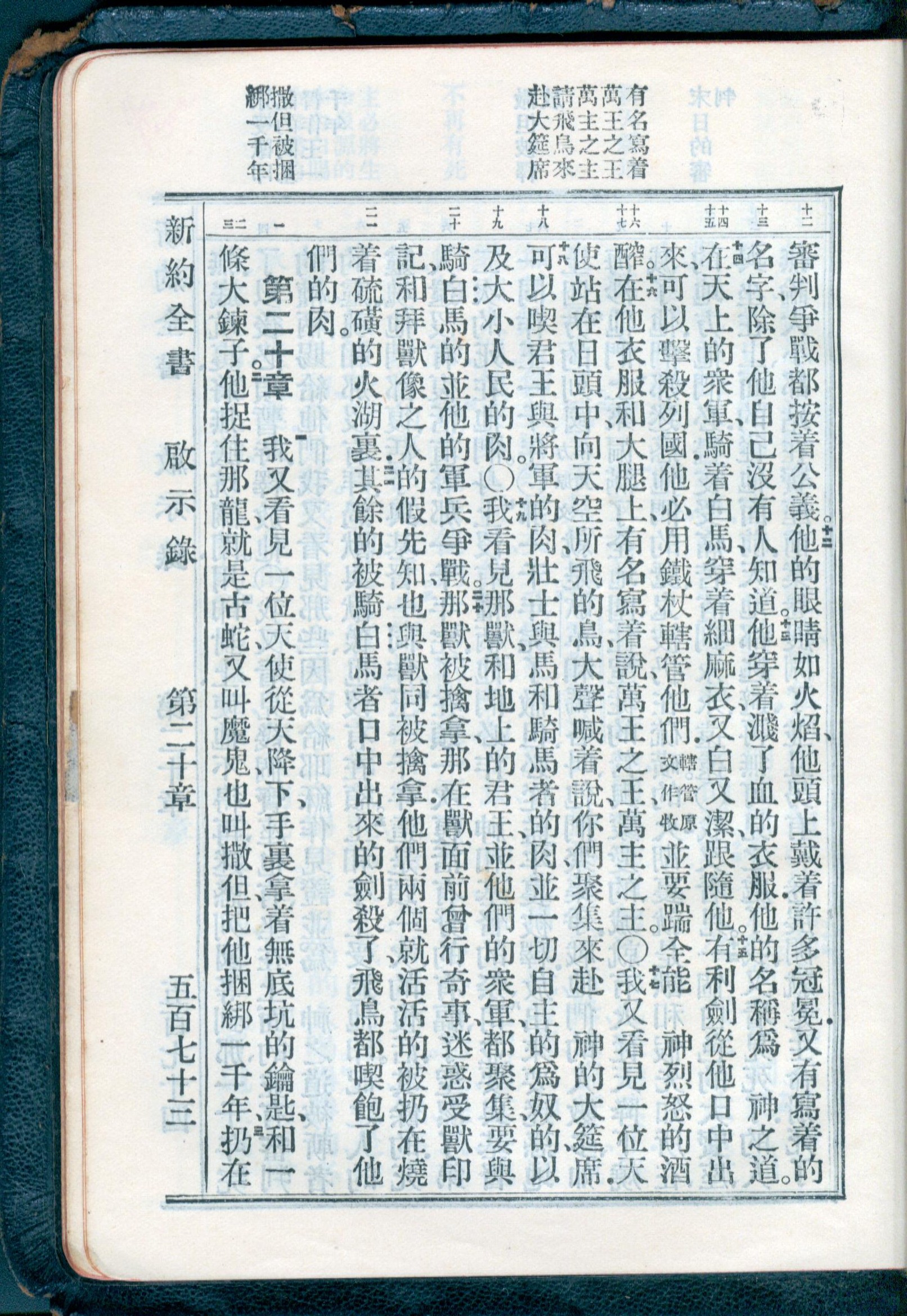 1934年新約全書(官話和合本) 啟示錄 19 章 12 節到 20 章 3 節
