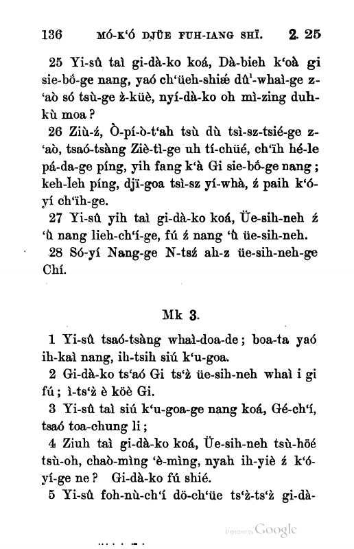 1894年救主耶穌基督新約聖書 馬可福音 2 章 25 節到 3 章 5 節