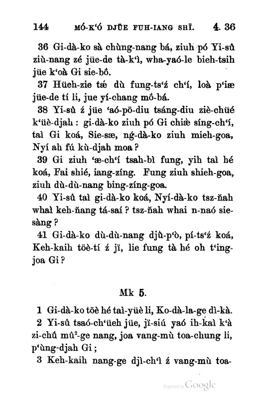1894年救主耶穌基督新約聖書 馬可福音 4 章 36 節到 5 章 3 節