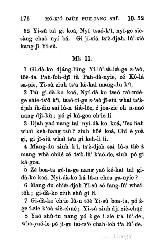 1894年救主耶穌基督新約聖書 馬可福音 10 章 52 節到 11 章 8 節