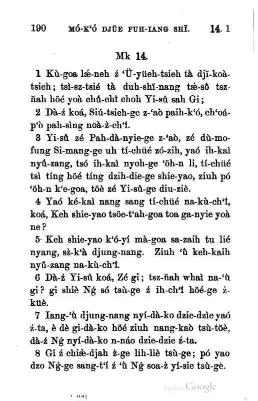 1894年救主耶穌基督新約聖書 馬可福音 14 章 1 節到 14 章 8 節
