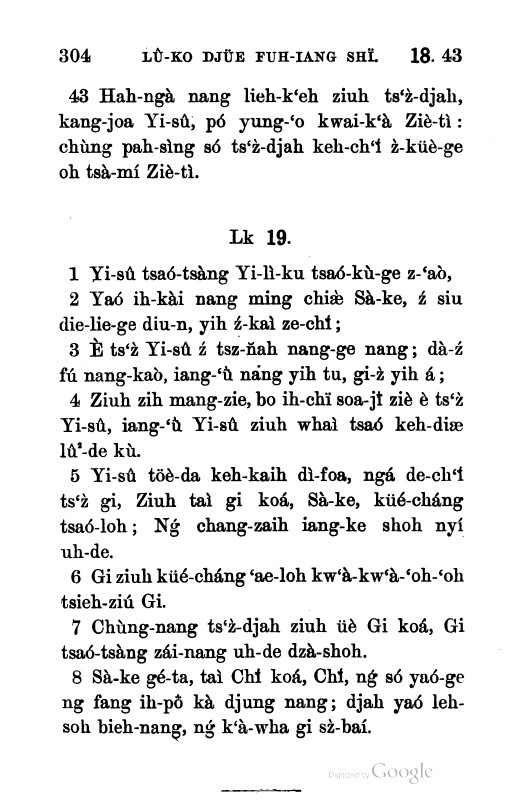 1894年救主耶穌基督新約聖書 路加福音 18 章 43 節到 19 章 8 節