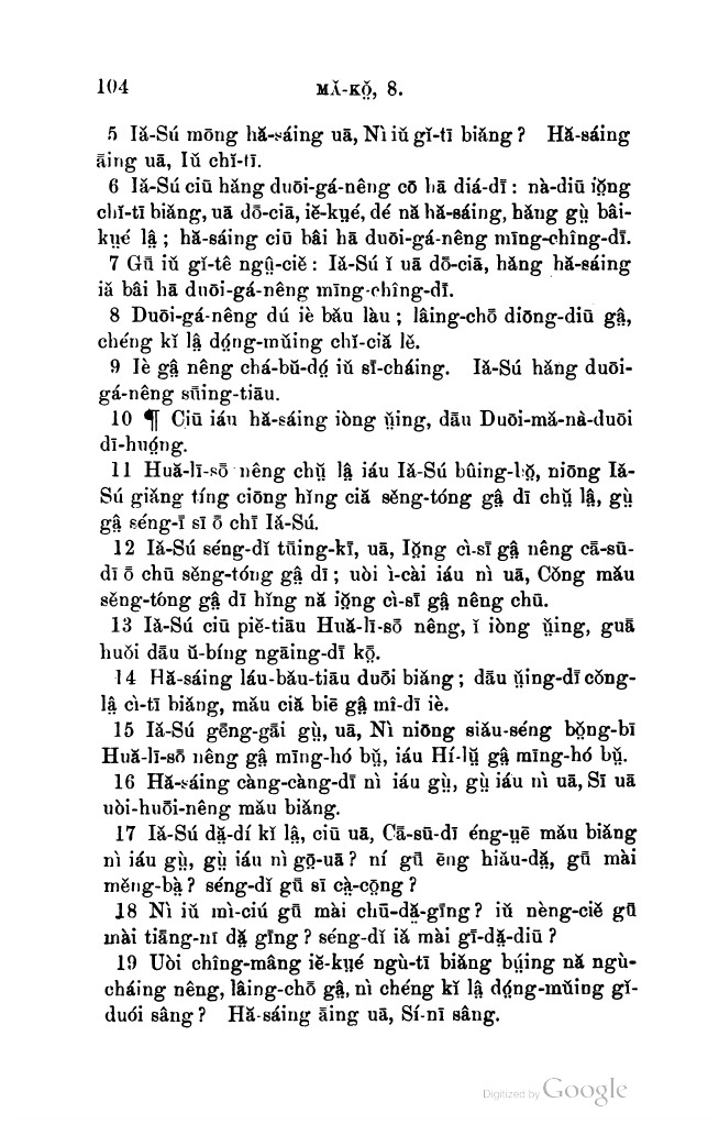 1896年新約全書 馬可福音 8 章 5 節到 8 章 19 節