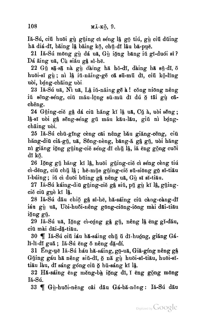 1896年新約全書 馬可福音 9 章 20 節到 9 章 33 節