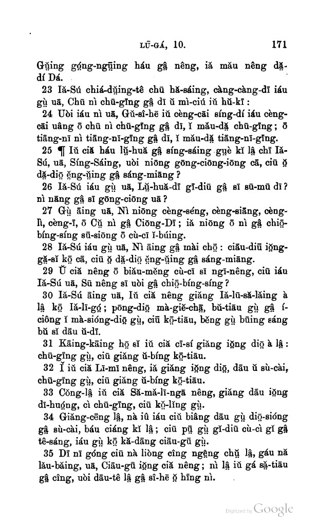 1896年新約全書 路加福音 10 章 22 節到 10 章 35 節
