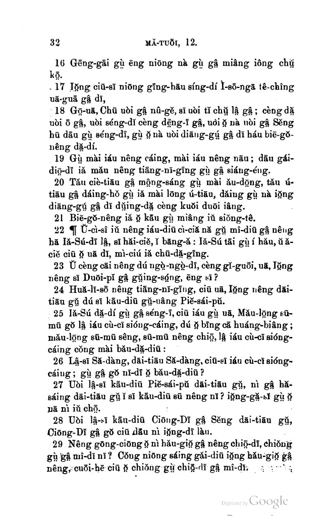1896年新約全書 馬太福音 12 章 16 節到 12 章 29 節