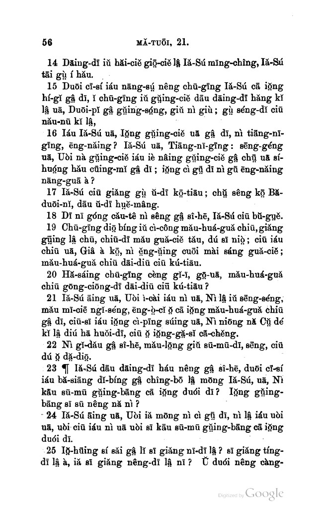 1896年新約全書 馬太福音 21 章 14 節到 21 章 25 節