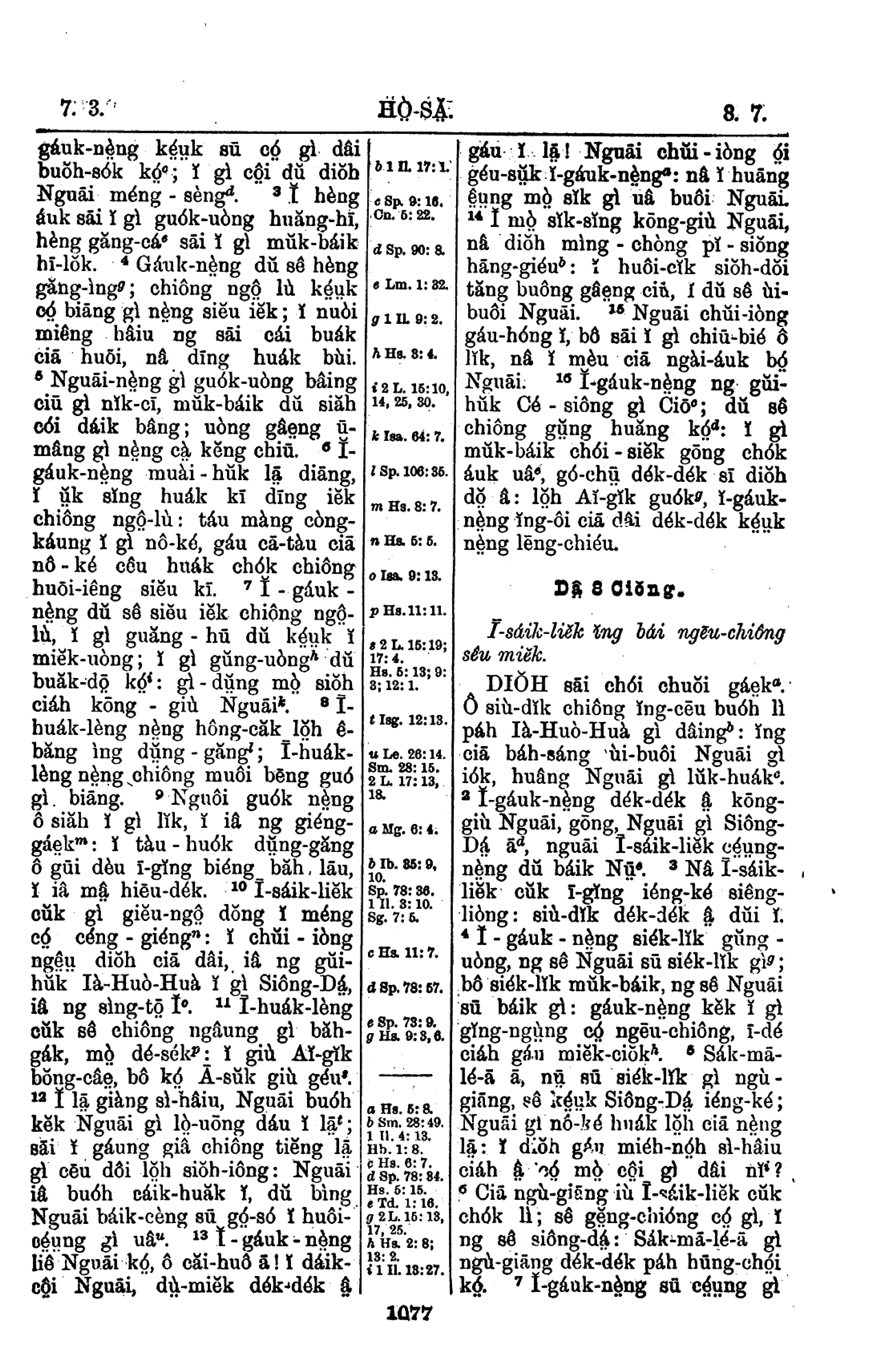 1908年新舊約全書 何西阿書 7 章 3 節到 8 章 7 節