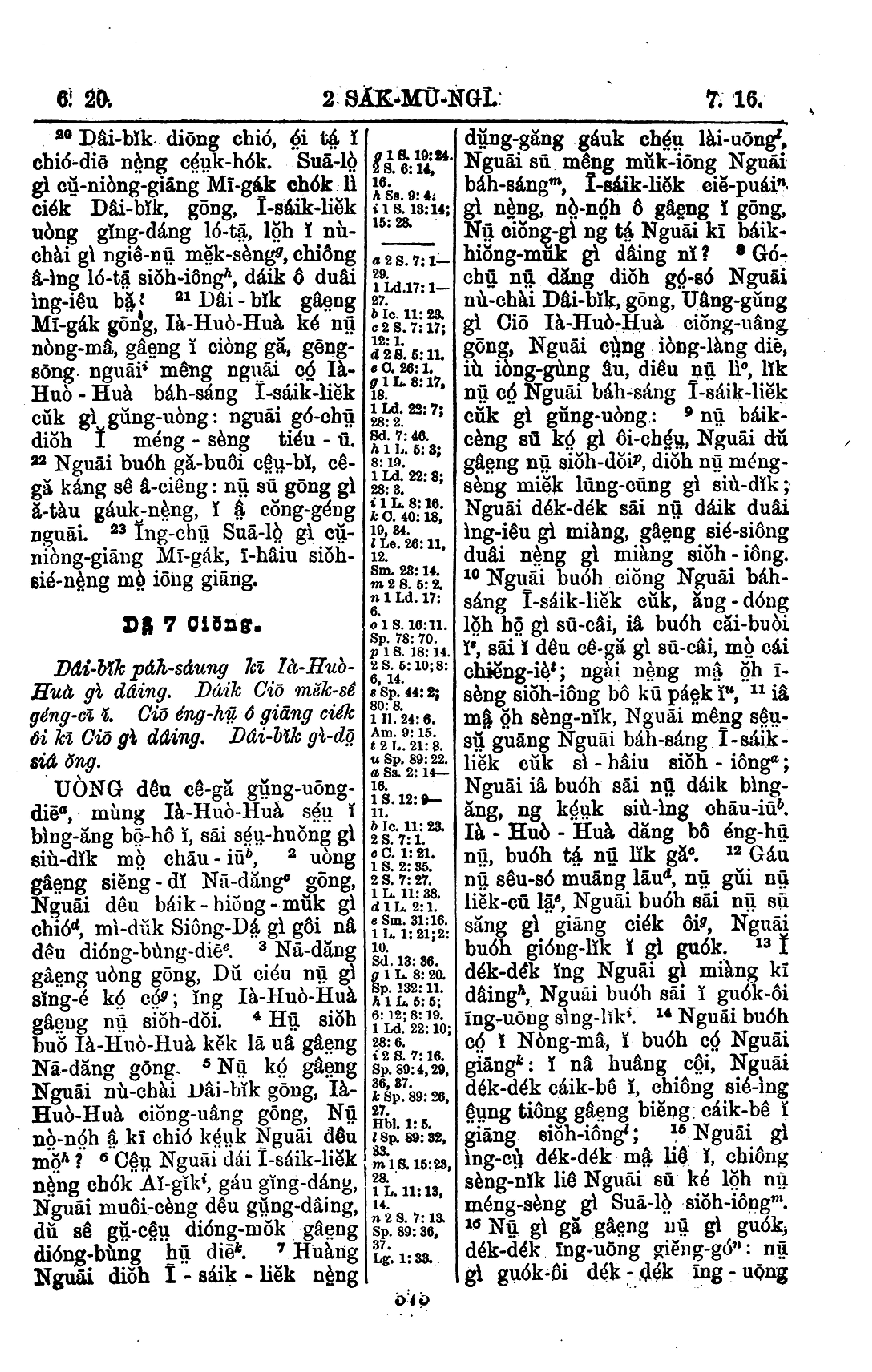 1908年新舊約全書 撒母耳記下 6 章 20 節到 7 章 16 節