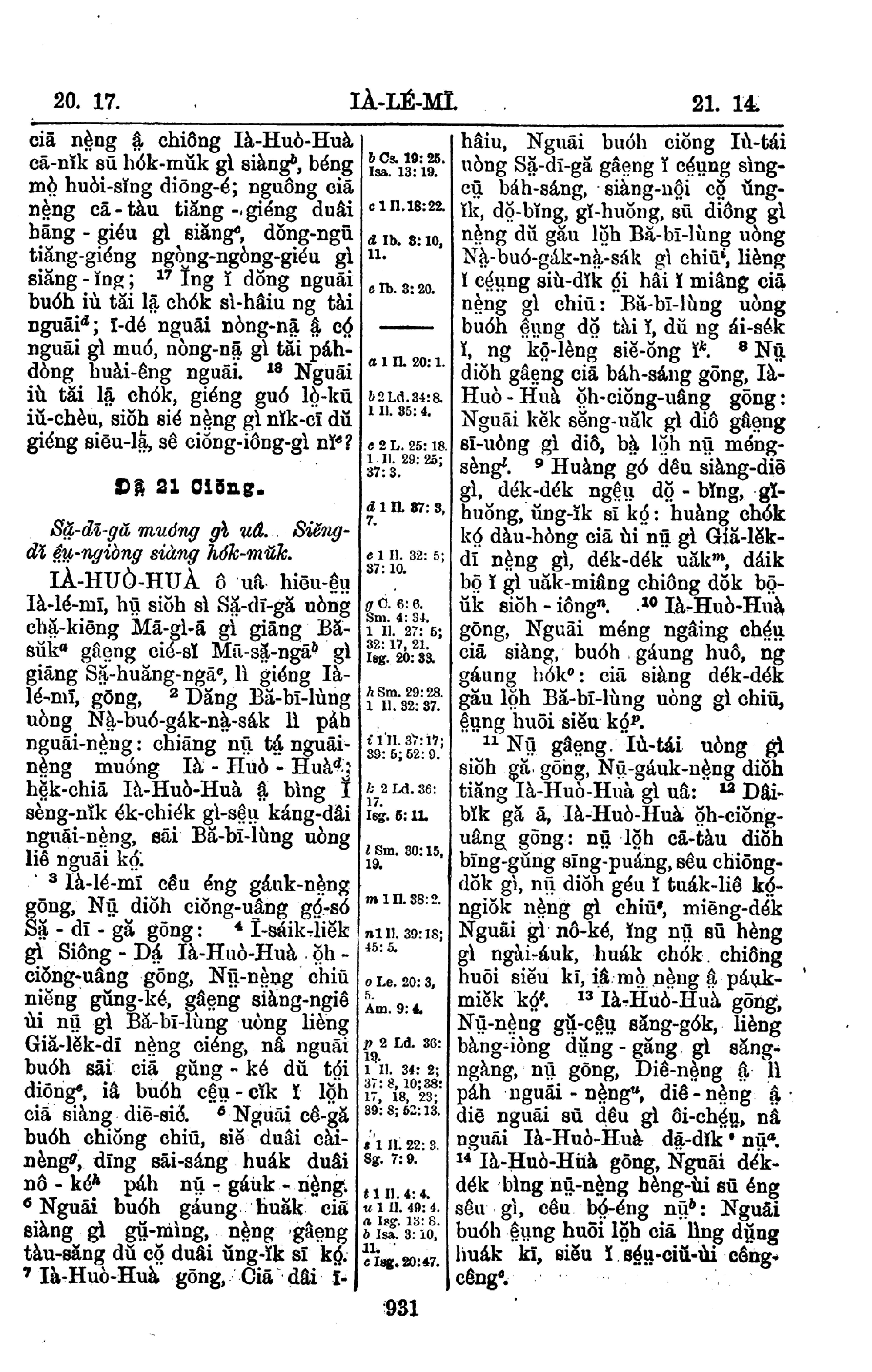 1908年新舊約全書 耶利米書 20 章 17 節到 21 章 14 節