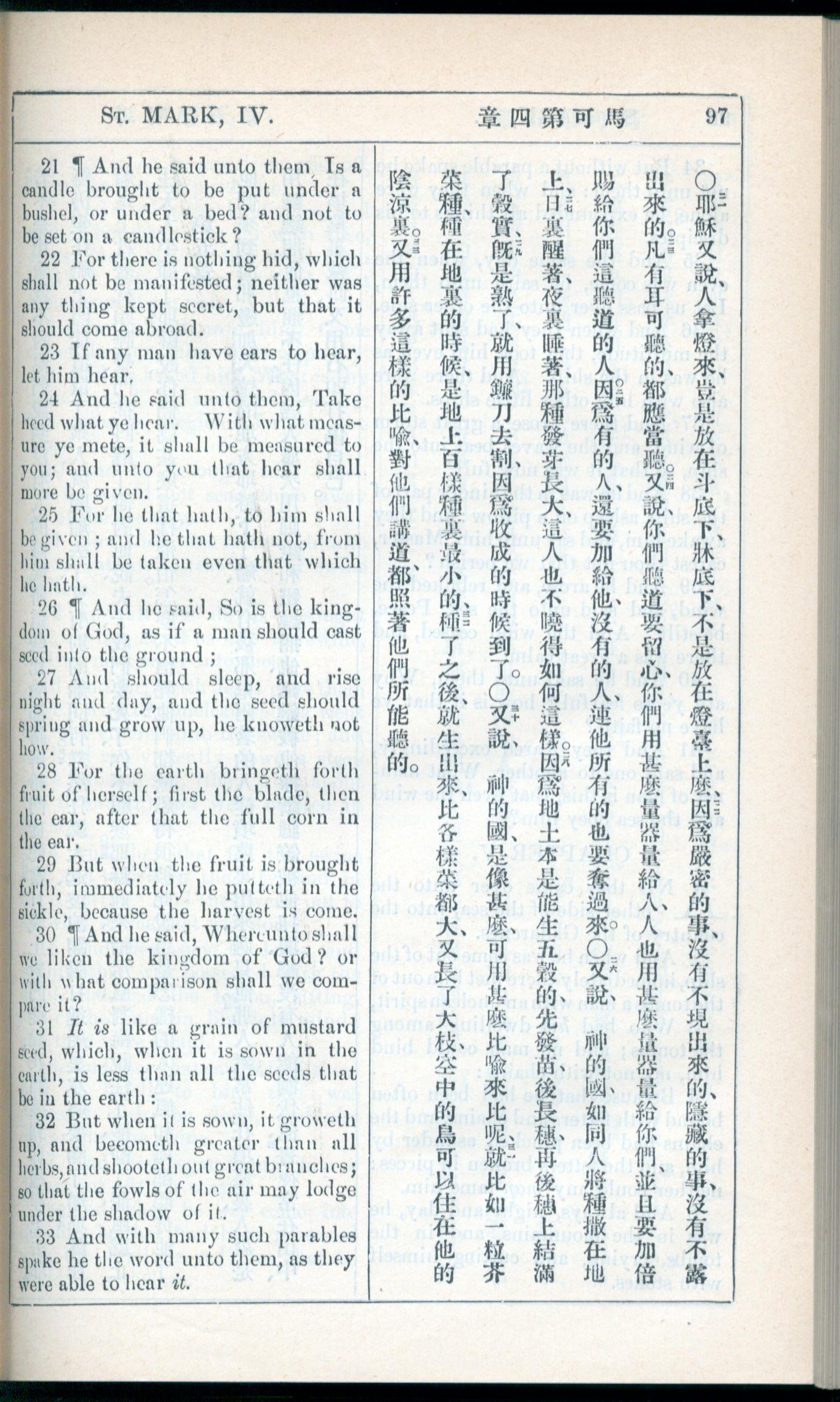 1908年新約全書(中西字) 馬可福音 4 章 21 節到 4 章 33 節