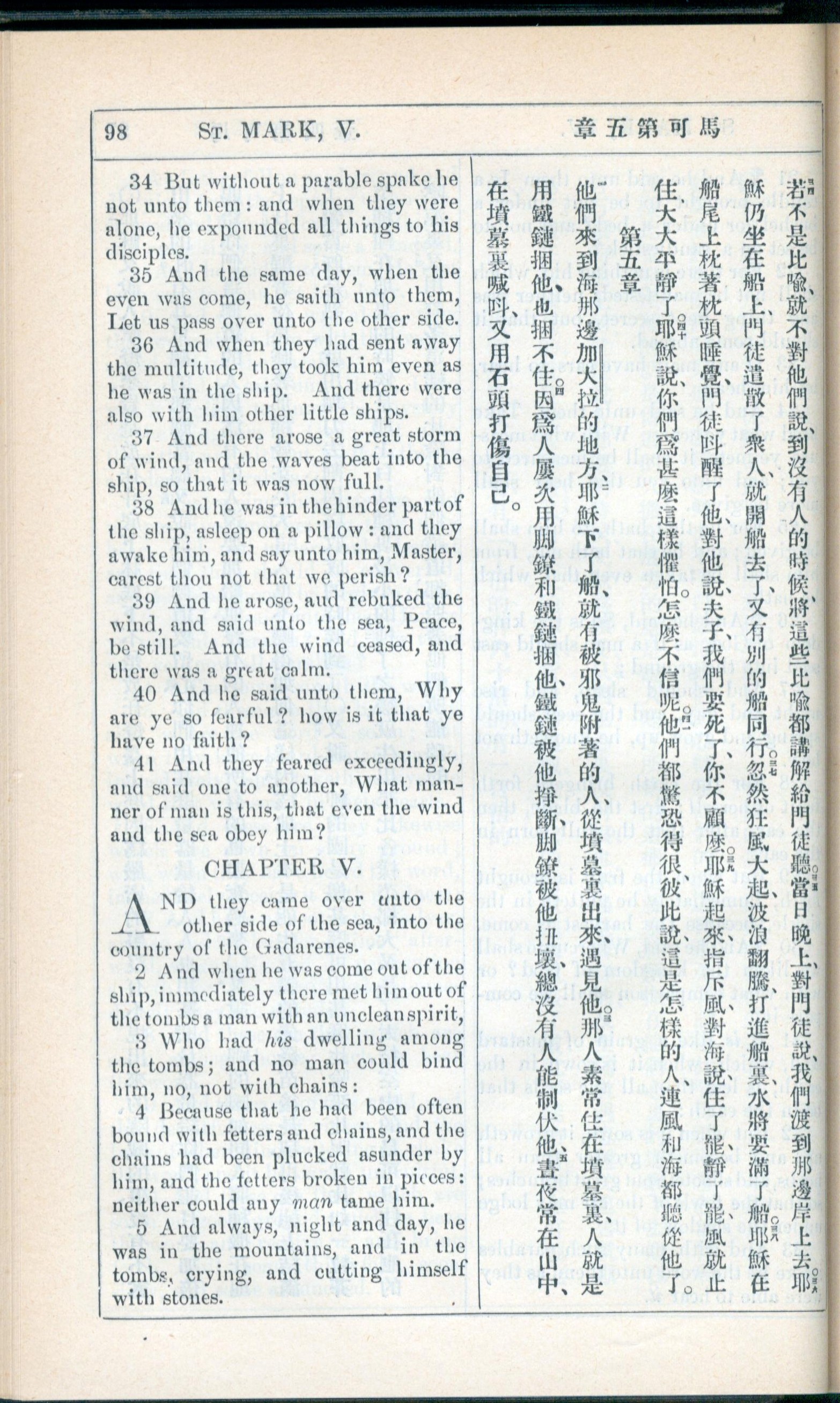 1908年新約全書(中西字) 馬可福音 4 章 34 節到 5 章 5 節