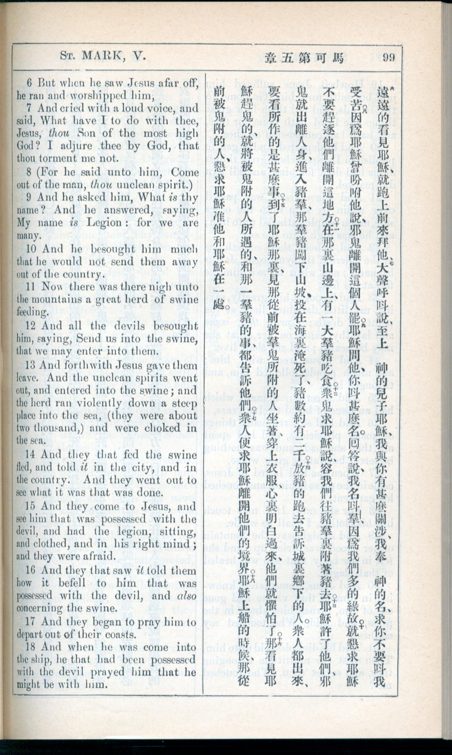 1908年新約全書(中西字) 馬可福音 5 章 6 節到 5 章 18 節