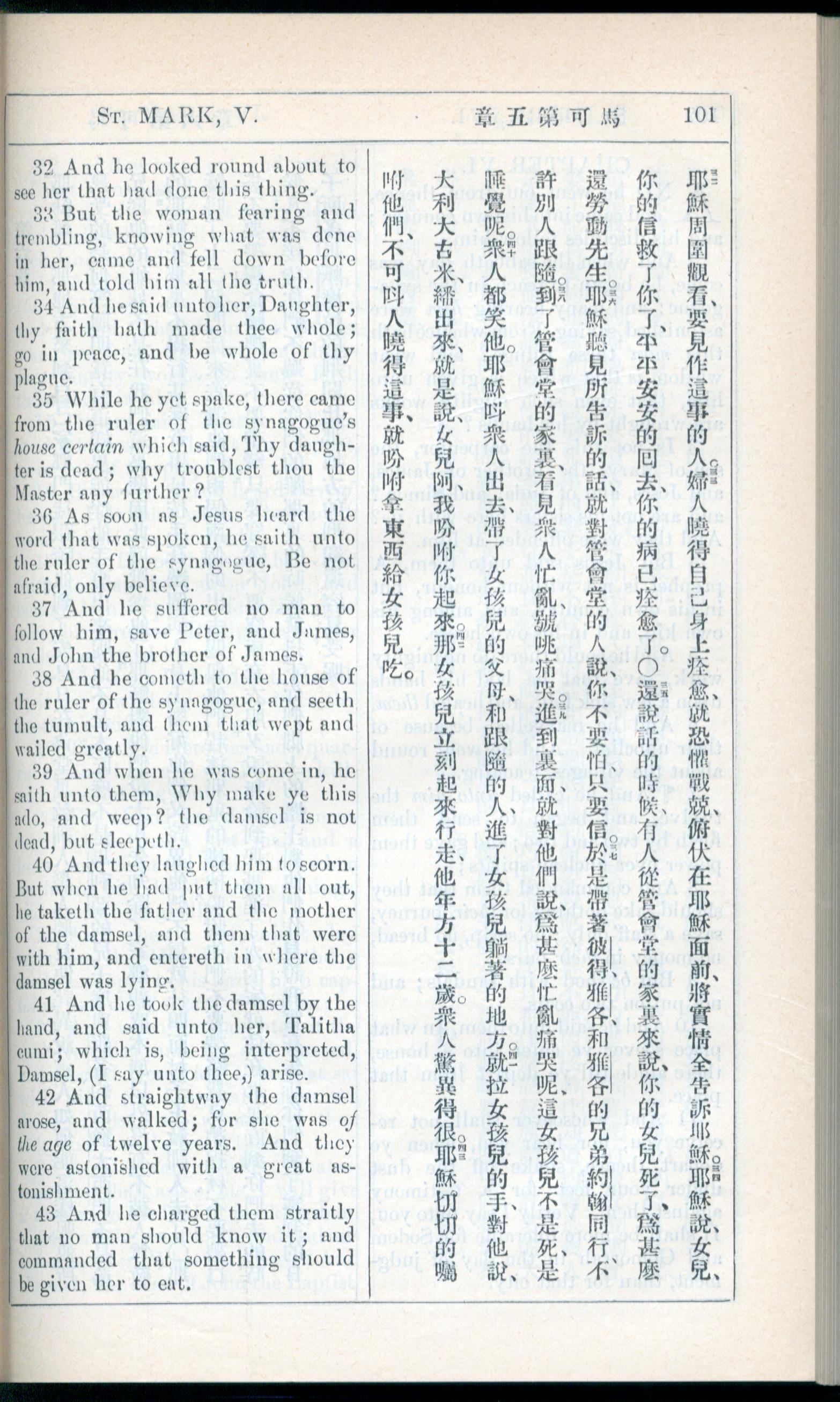 1908年新約全書(中西字) 馬可福音 5 章 32 節到 5 章 43 節