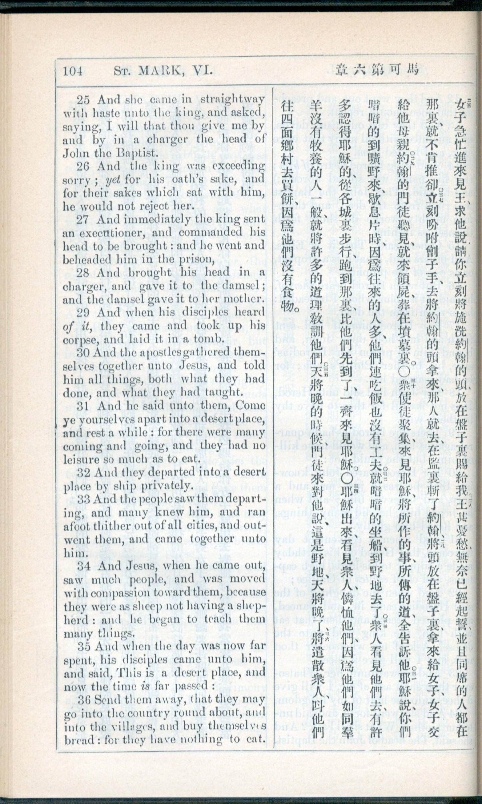 1908年新約全書(中西字) 馬可福音 6 章 25 節到 6 章 36 節