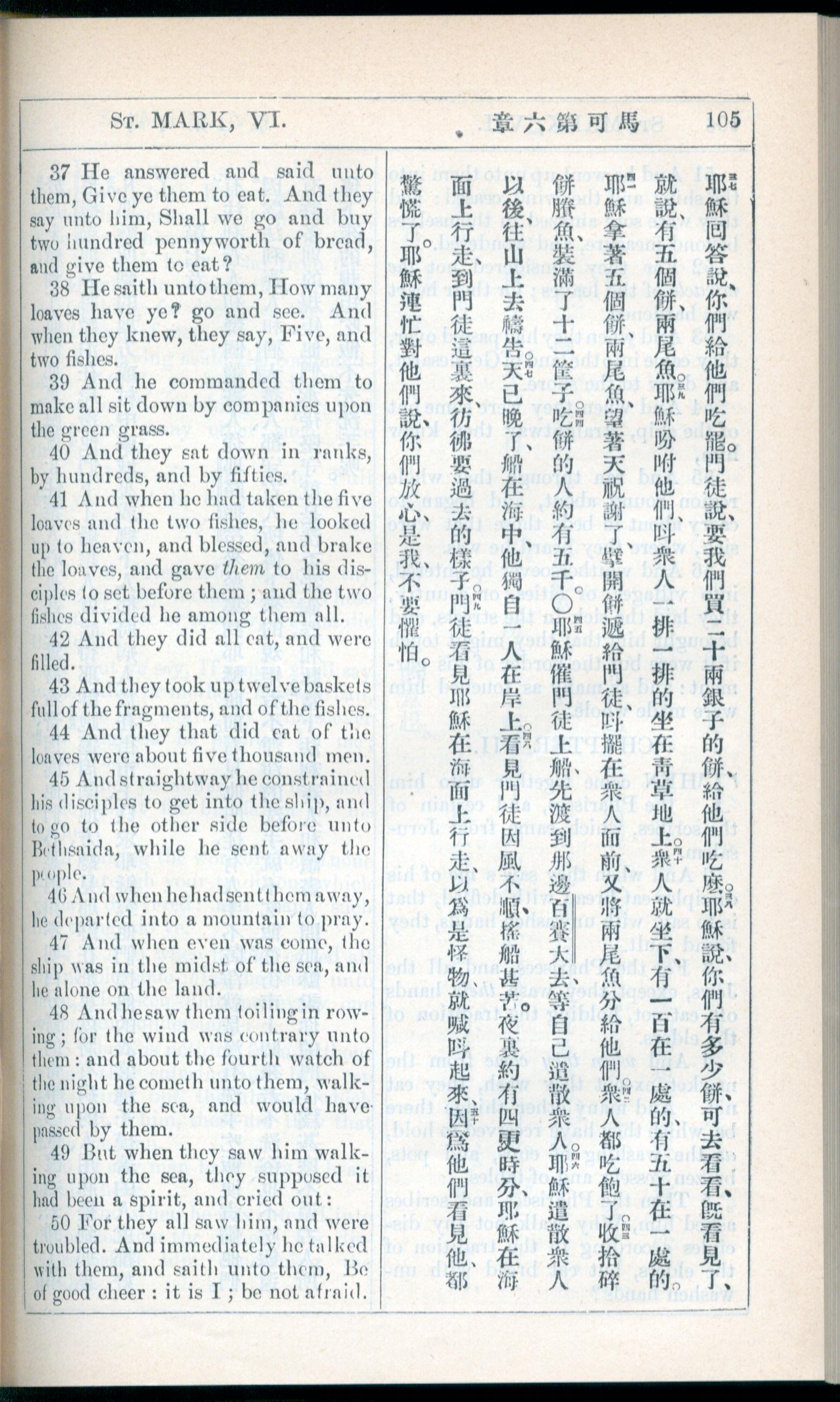 1908年新約全書(中西字) 馬可福音 6 章 37 節到 6 章 50 節