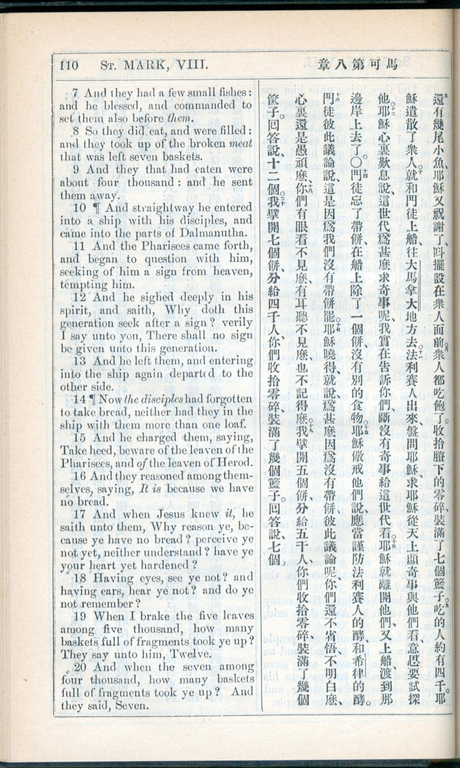 1908年新約全書(中西字) 馬可福音 8 章 7 節到 8 章 20 節