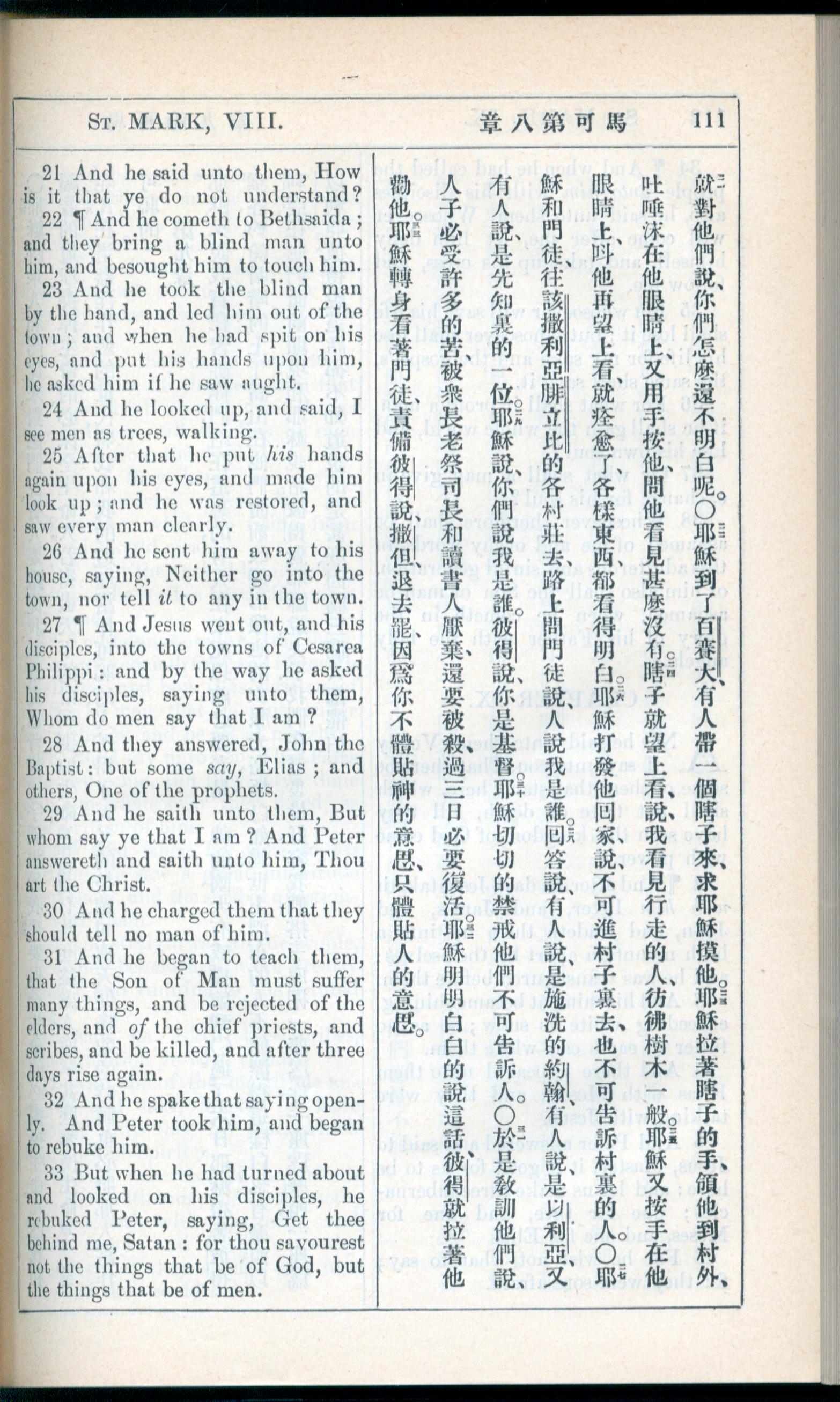 1908年新約全書(中西字) 馬可福音 8 章 21 節到 8 章 33 節