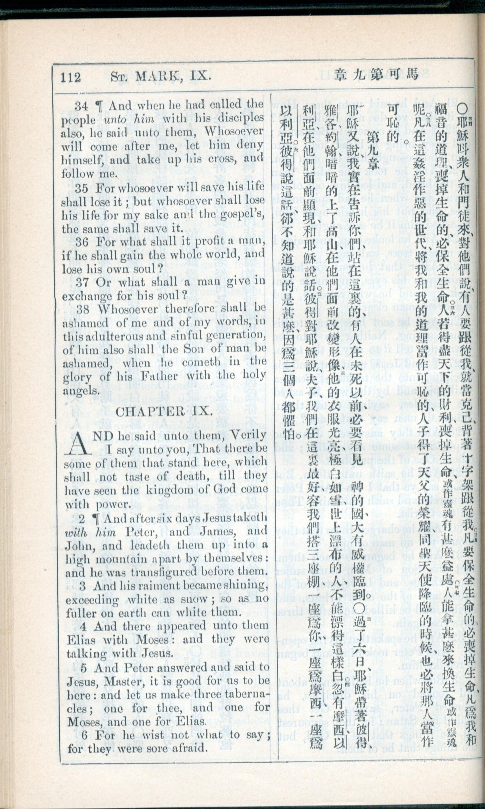 1908年新約全書(中西字) 馬可福音 8 章 34 節到 9 章 6 節