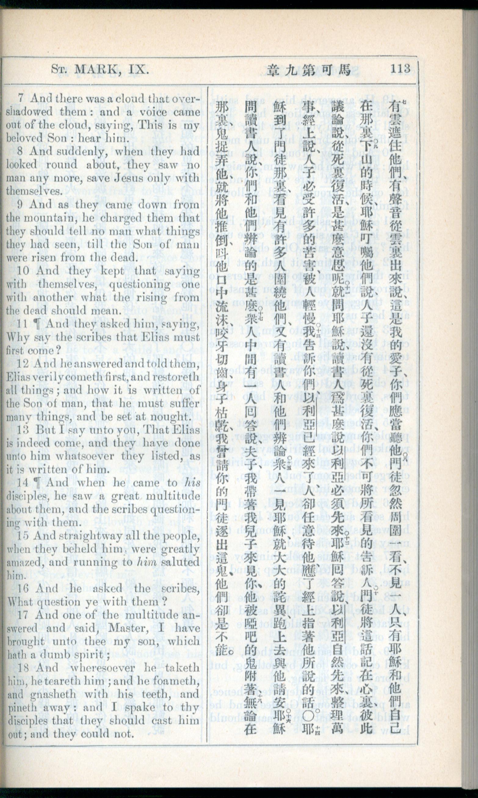 1908年新約全書(中西字) 馬可福音 9 章 7 節到 9 章 18 節