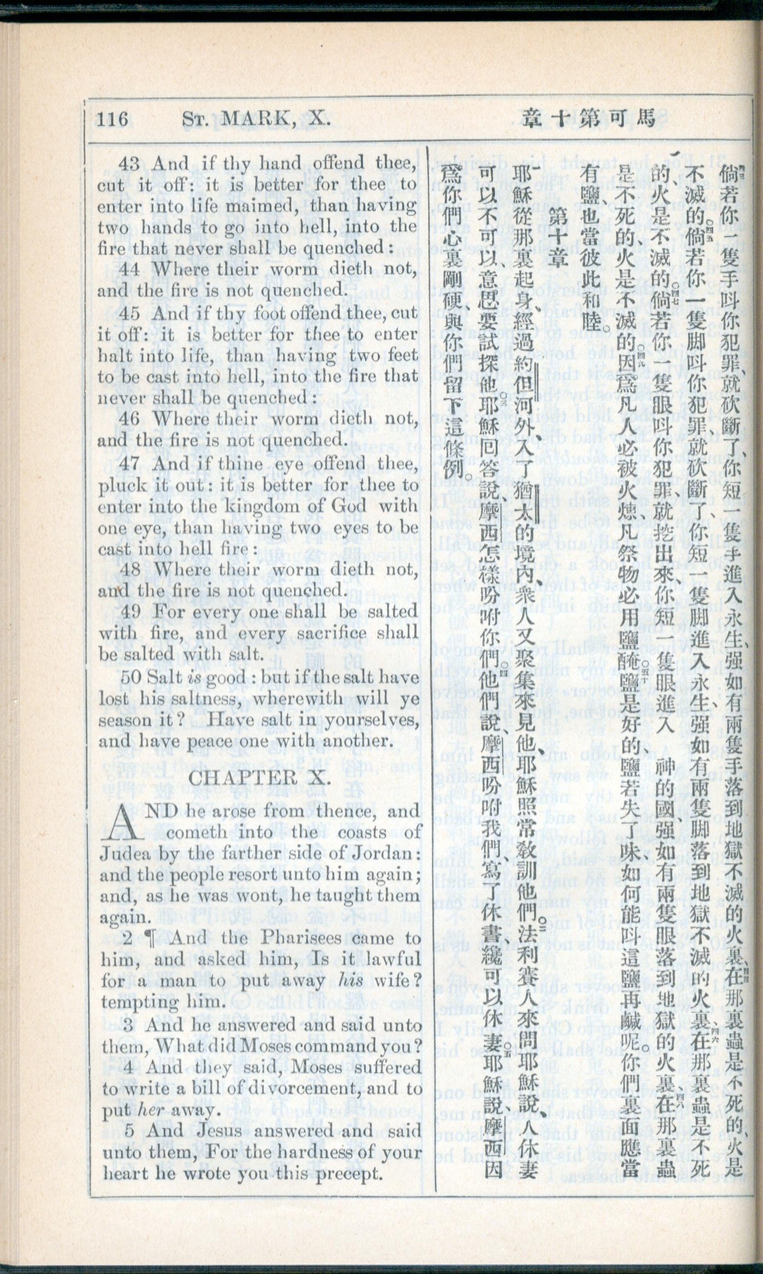 1908年新約全書(中西字) 馬可福音 9 章 43 節到 10 章 5 節