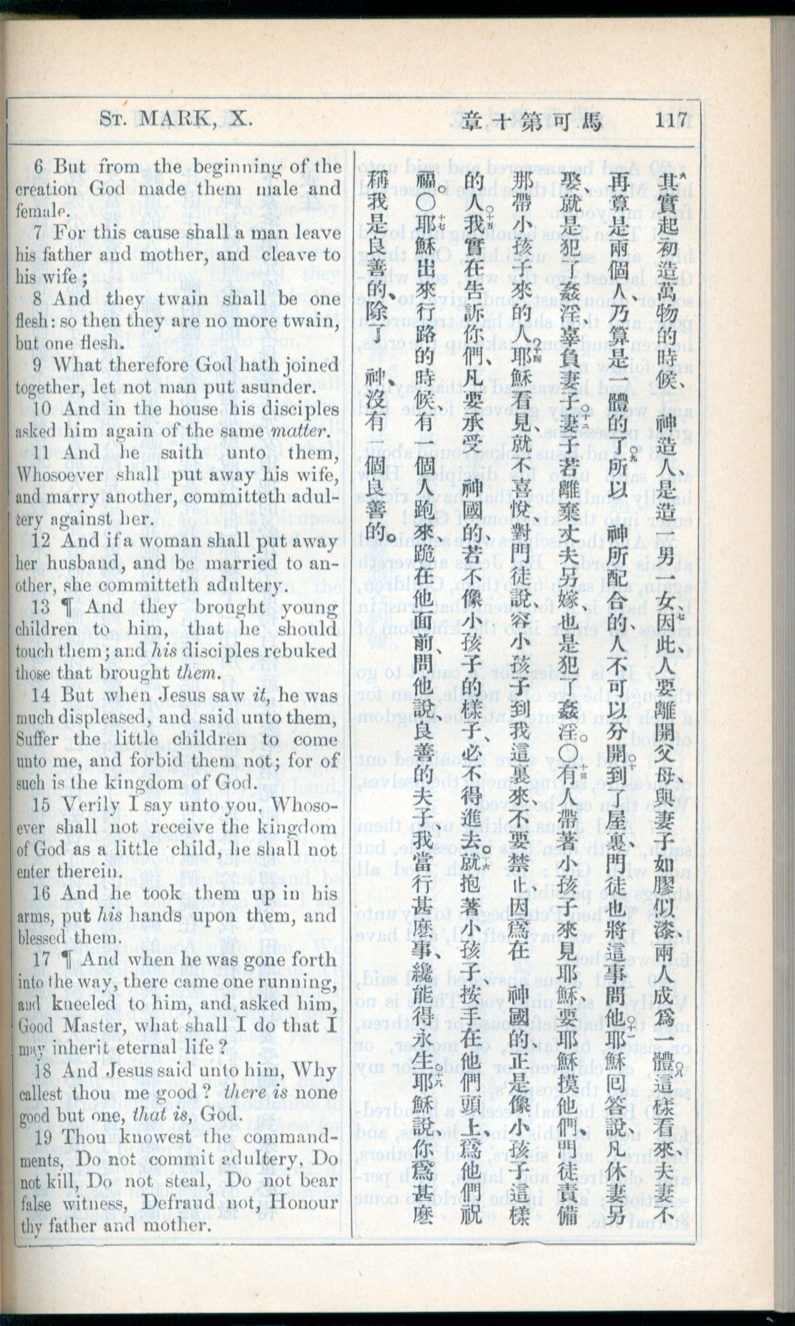 1908年新約全書(中西字) 馬可福音 10 章 6 節到 10 章 19 節