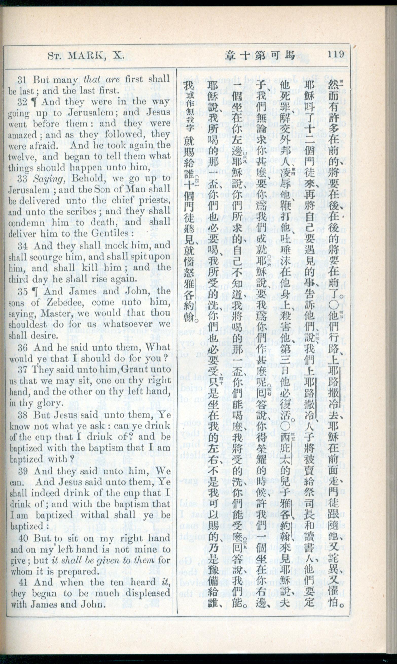 1908年新約全書(中西字) 馬可福音 10 章 31 節到 10 章 41 節