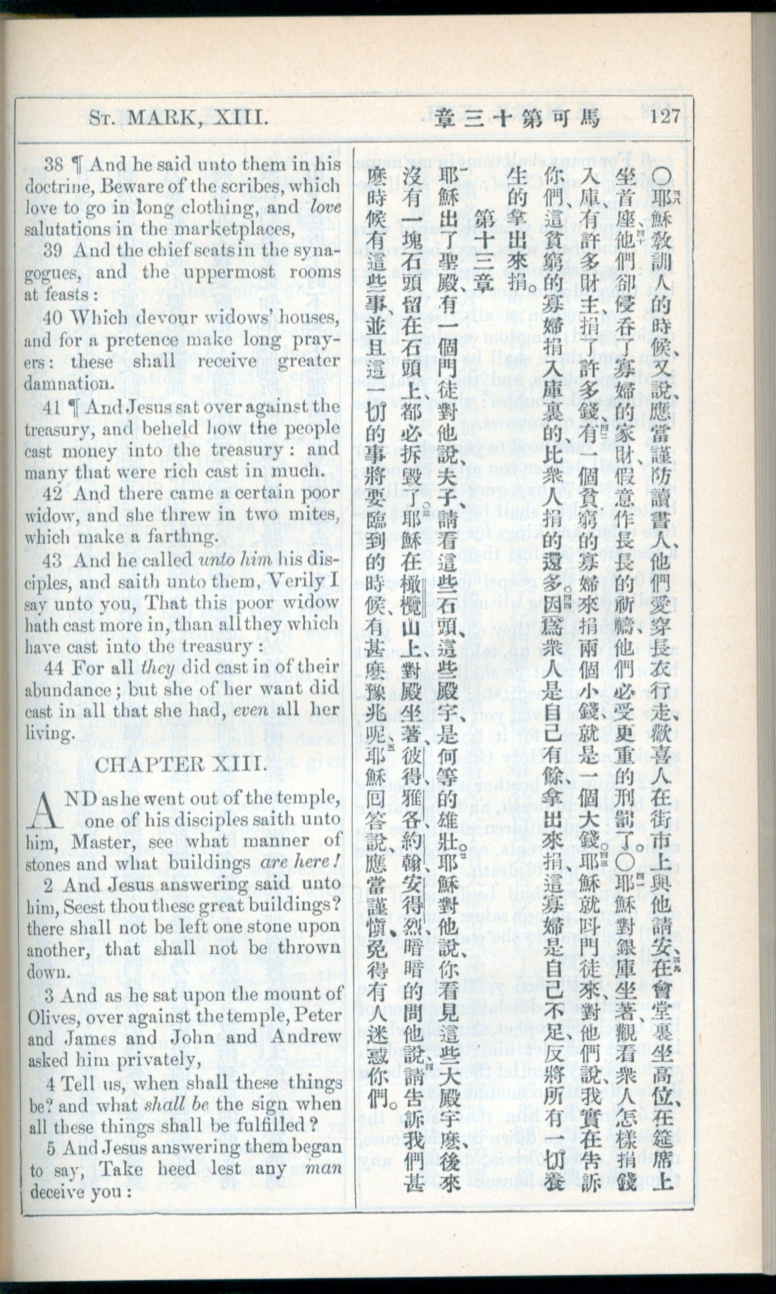 1908年新約全書(中西字) 馬可福音 12 章 38 節到 13 章 5 節