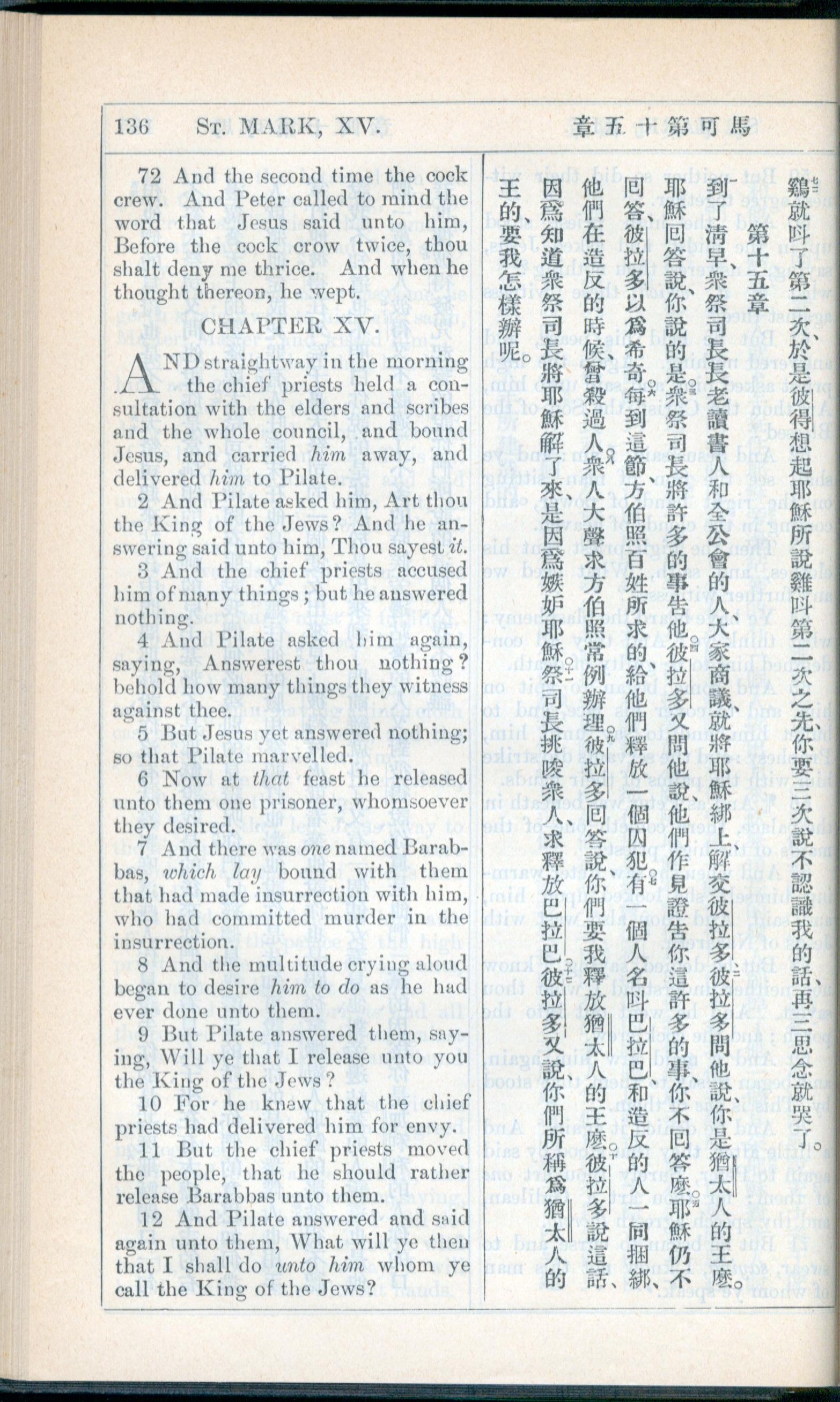 1908年新約全書(中西字) 馬可福音 14 章 72 節到 15 章 12 節