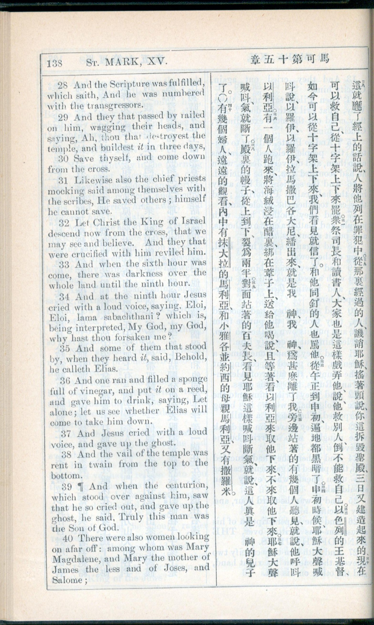 1908年新約全書(中西字) 馬可福音 15 章 28 節到 15 章 40 節
