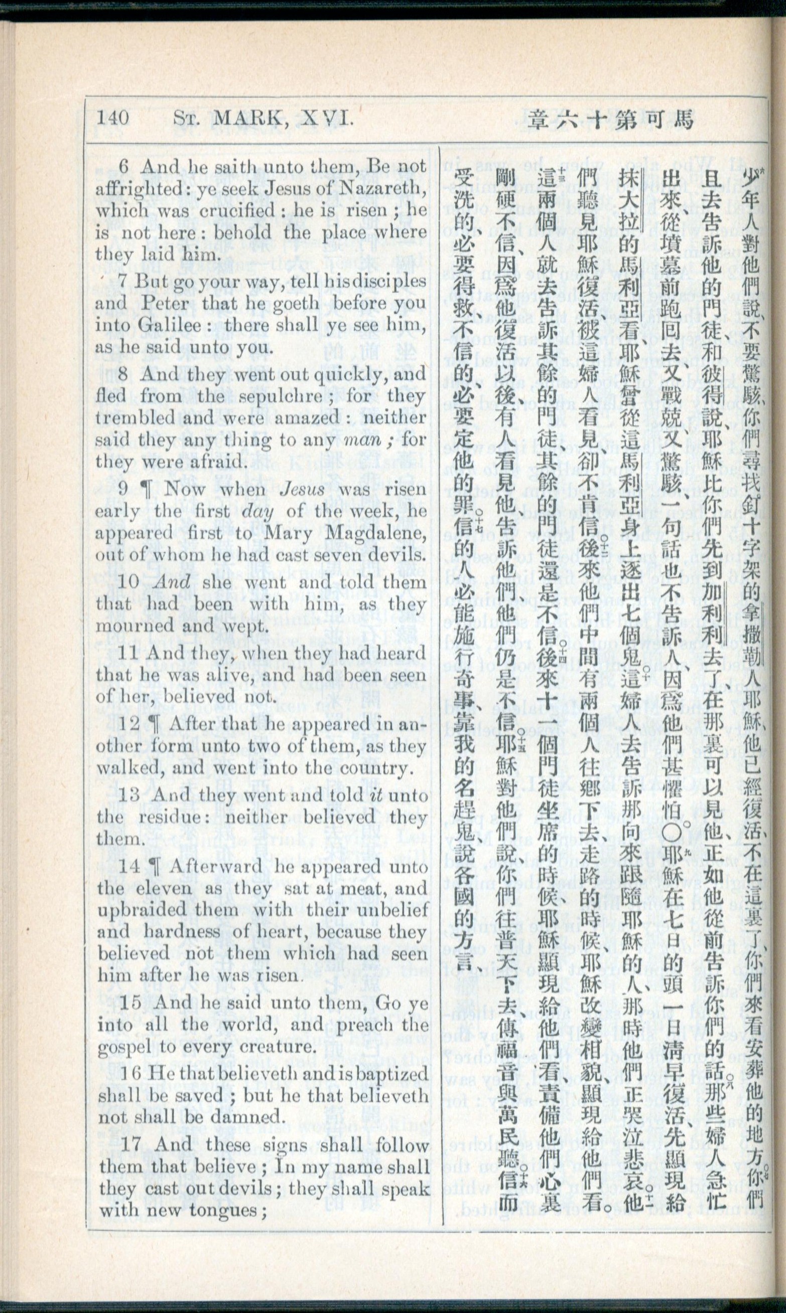 1908年新約全書(中西字) 馬可福音 16 章 6 節到 16 章 17 節