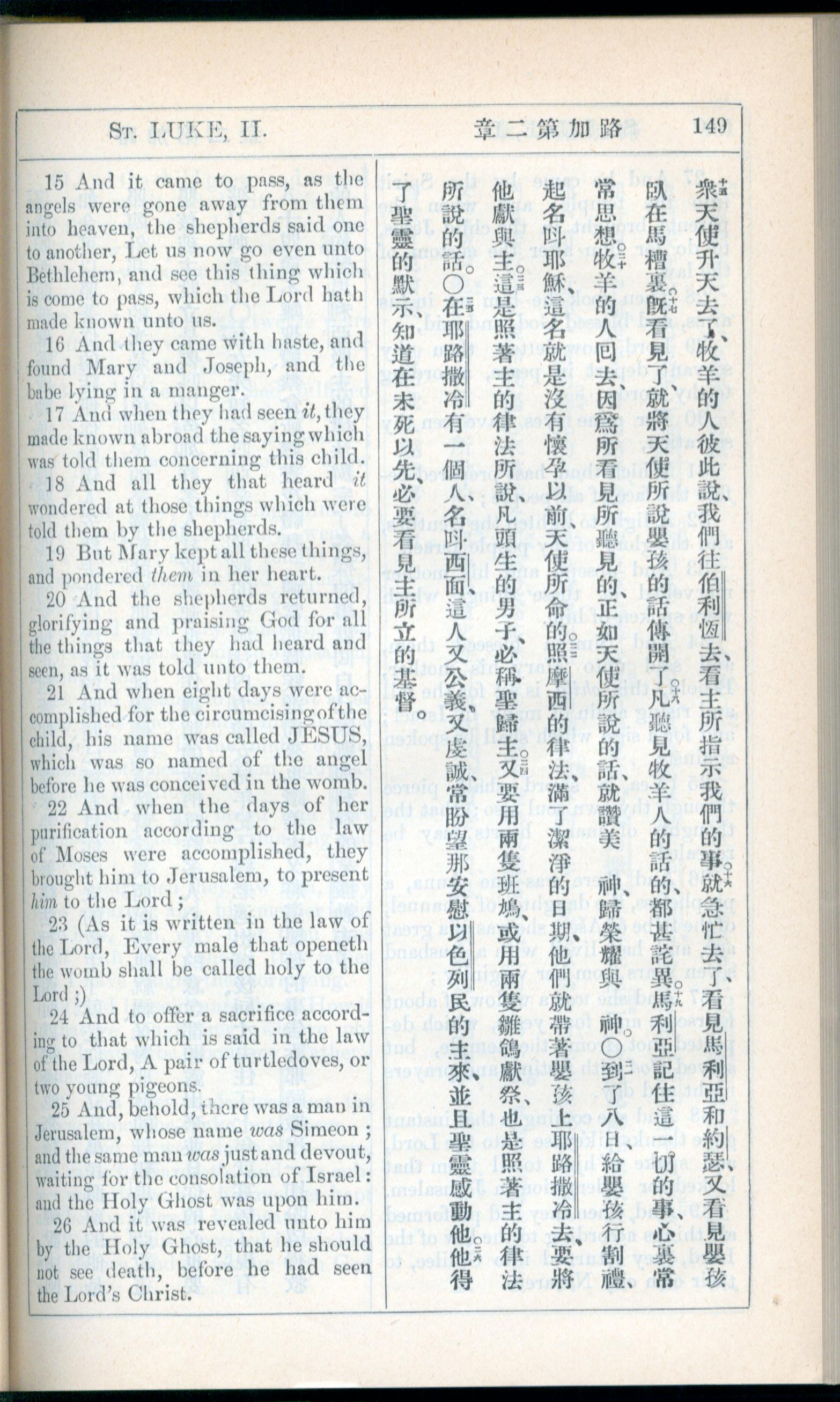 1908年新約全書(中西字) 路加福音 2 章 15 節到 2 章 26 節