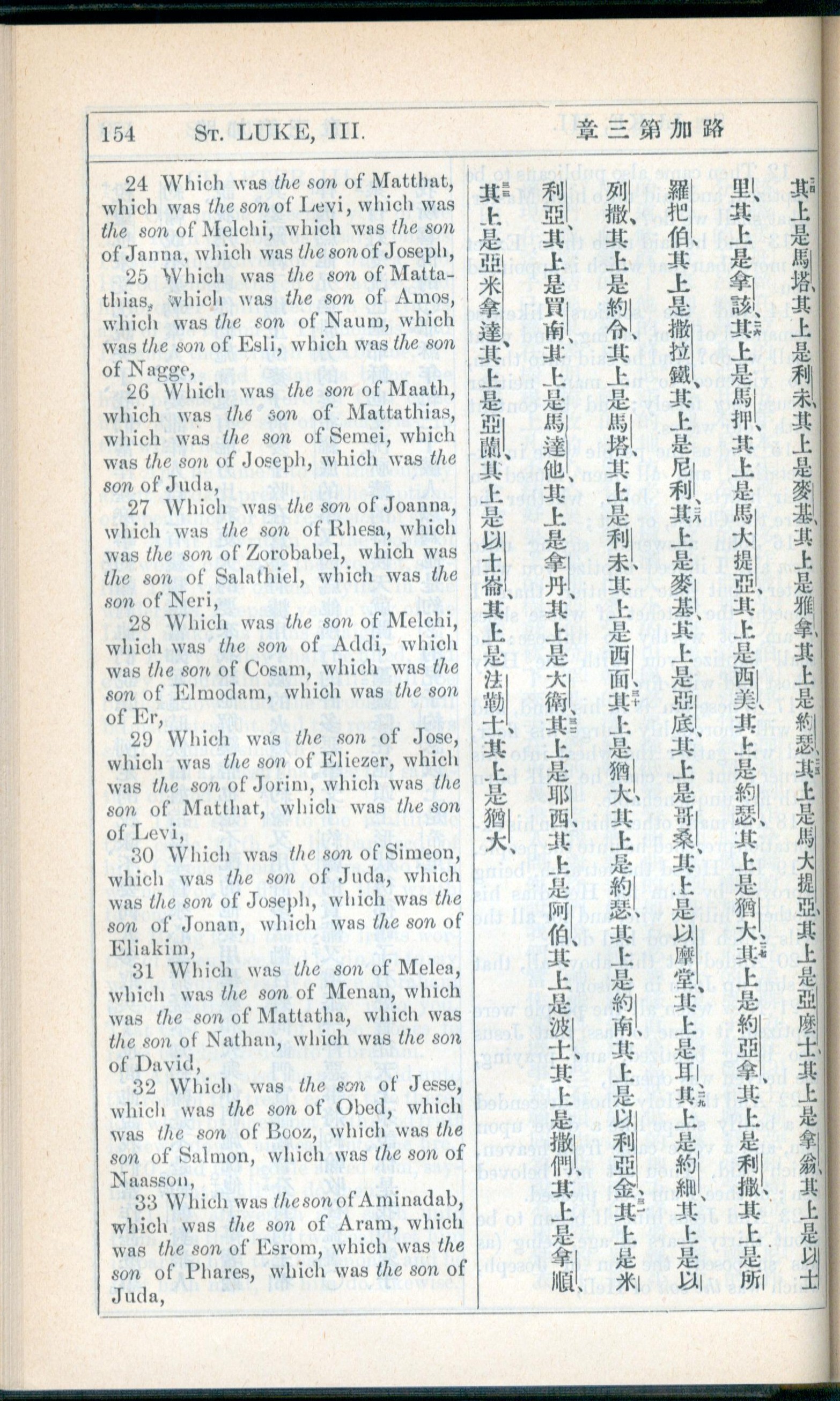 1908年新約全書(中西字) 路加福音 3 章 24 節到 3 章 33 節