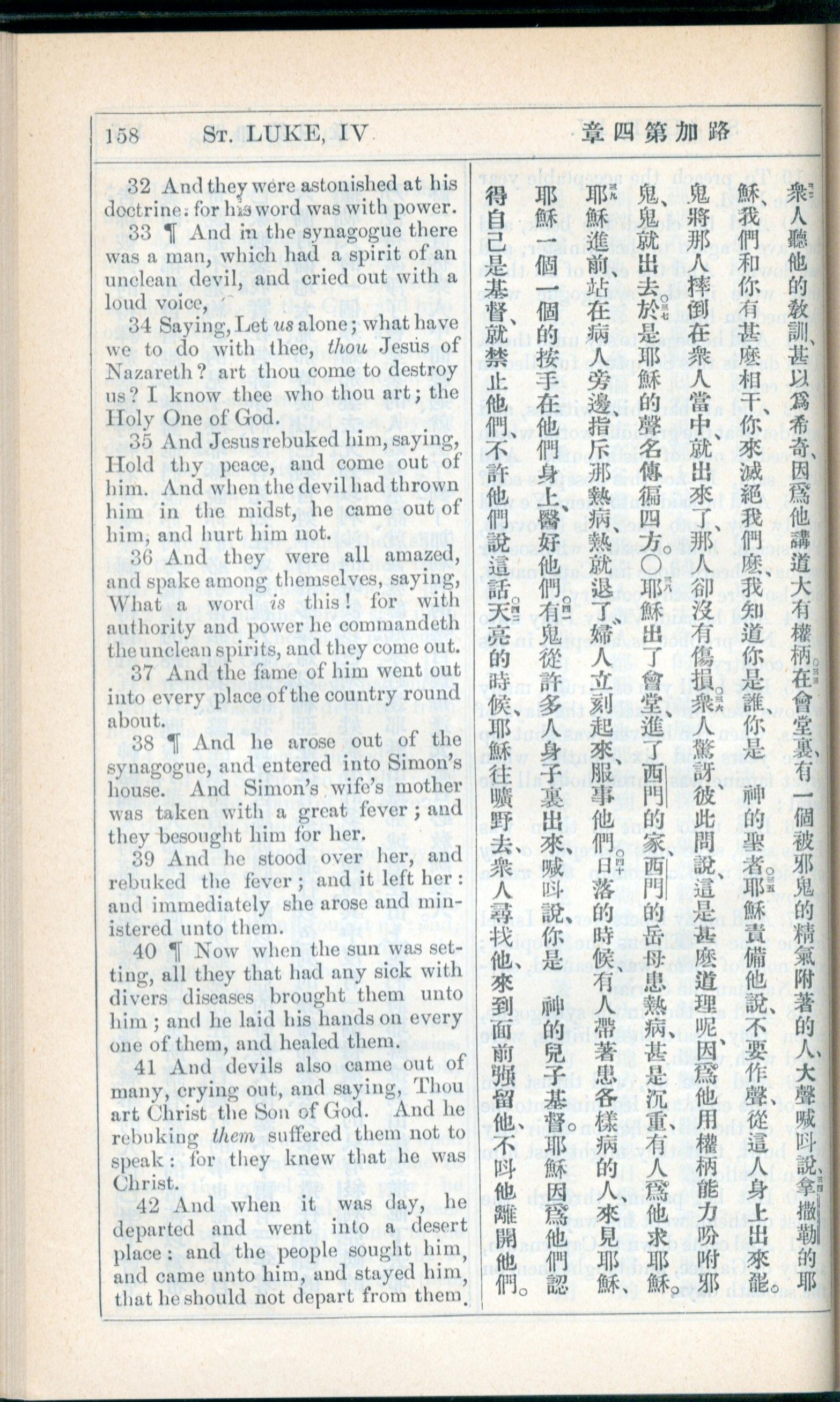 1908年新約全書(中西字) 路加福音 4 章 32 節到 4 章 42 節