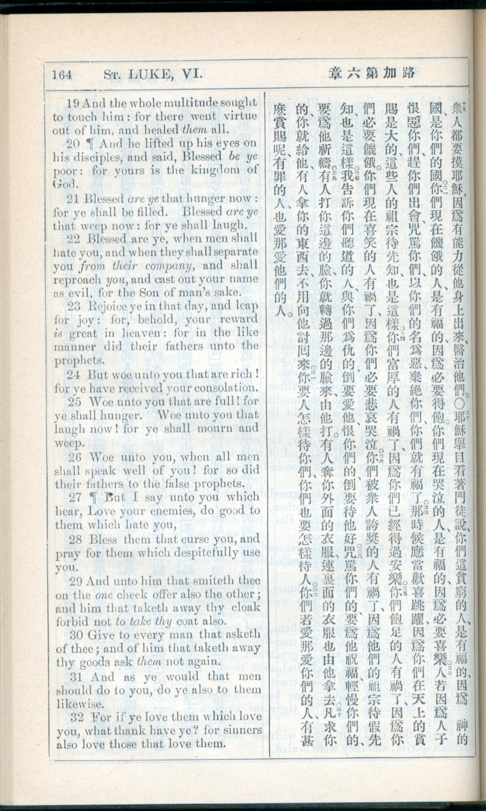 1908年新約全書(中西字) 路加福音 6 章 19 節到 6 章 32 節