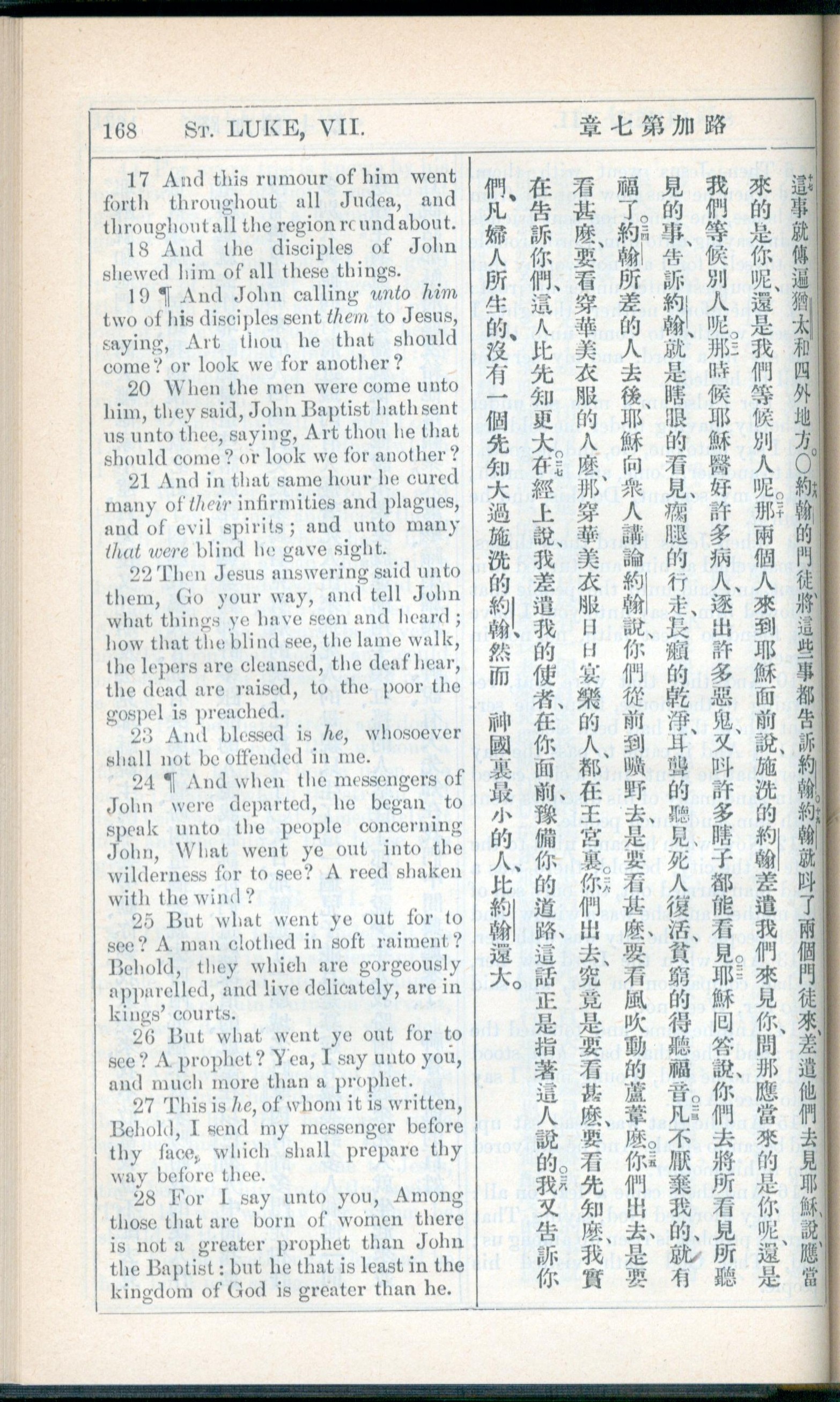 1908年新約全書(中西字) 路加福音 7 章 17 節到 7 章 28 節