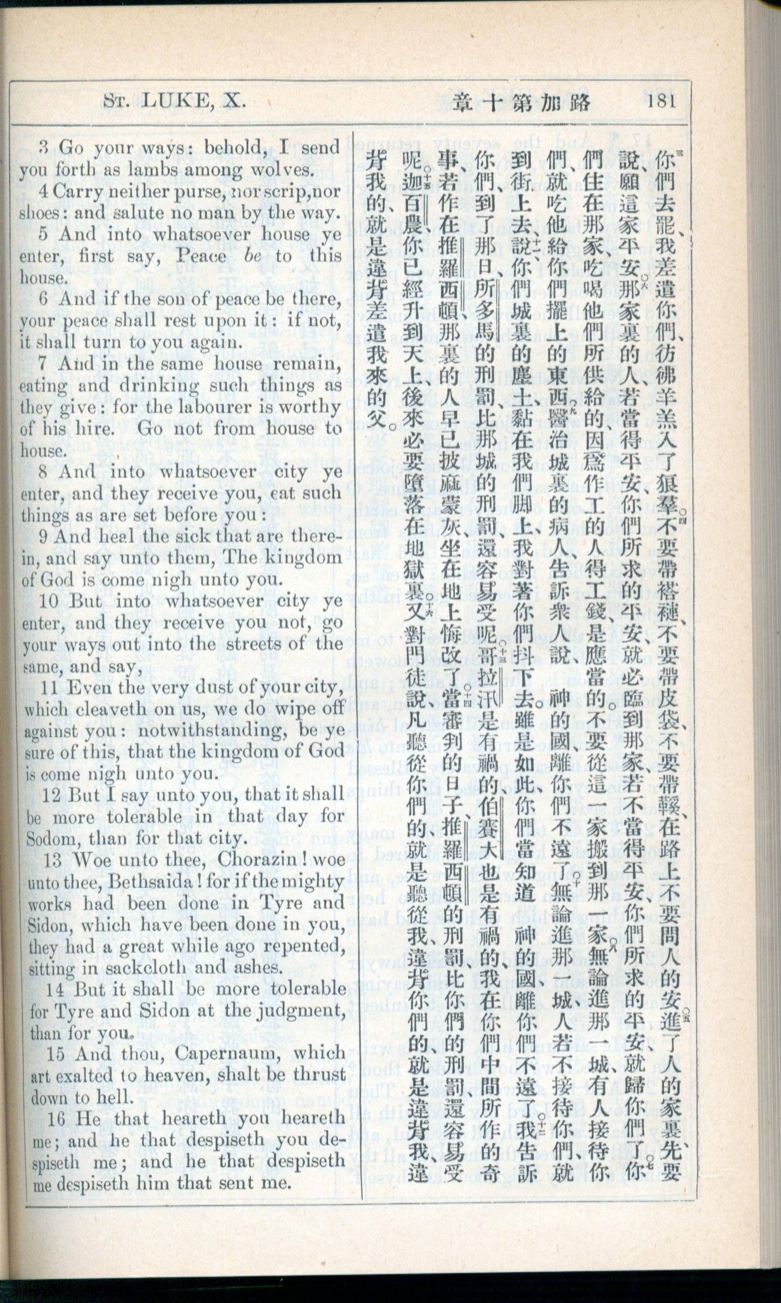 1908年新約全書(中西字) 路加福音 10 章 3 節到 10 章 16 節