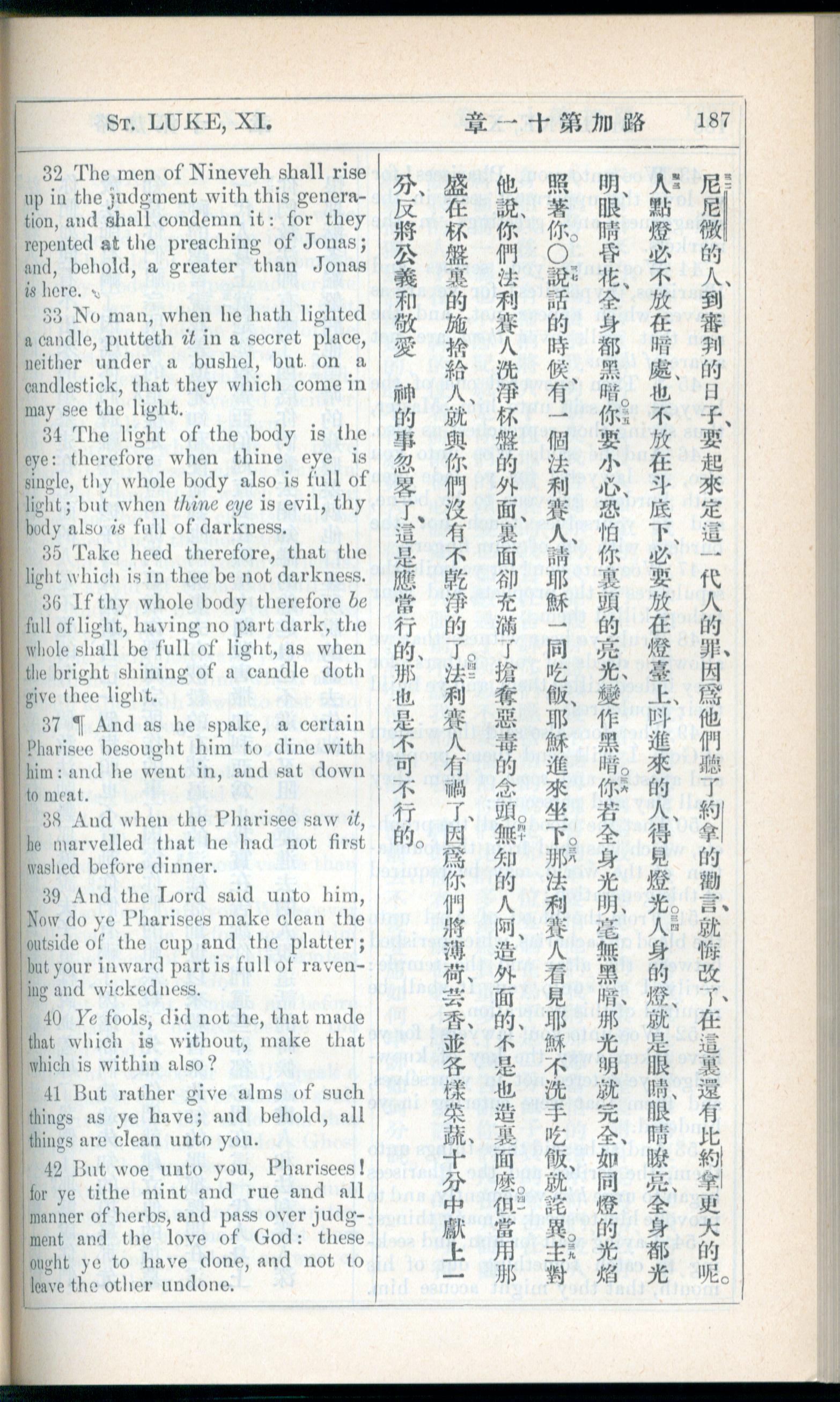 1908年新約全書(中西字) 路加福音 11 章 32 節到 11 章 42 節