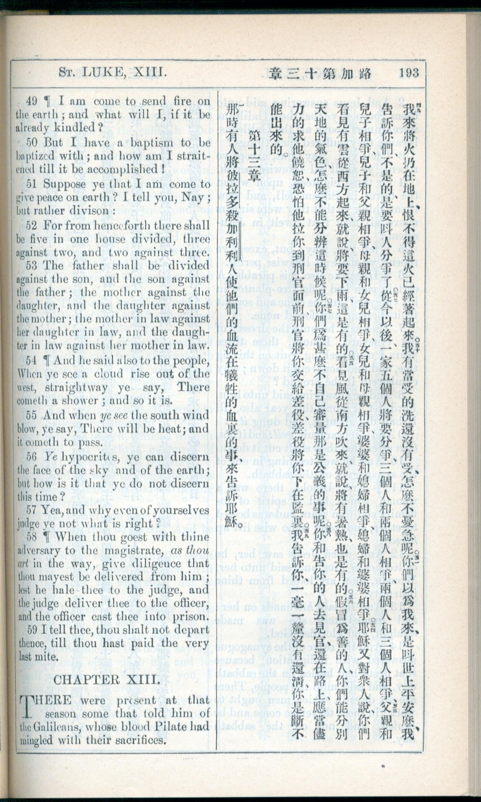 1908年新約全書(中西字) 路加福音 12 章 49 節到 13 章 1 節