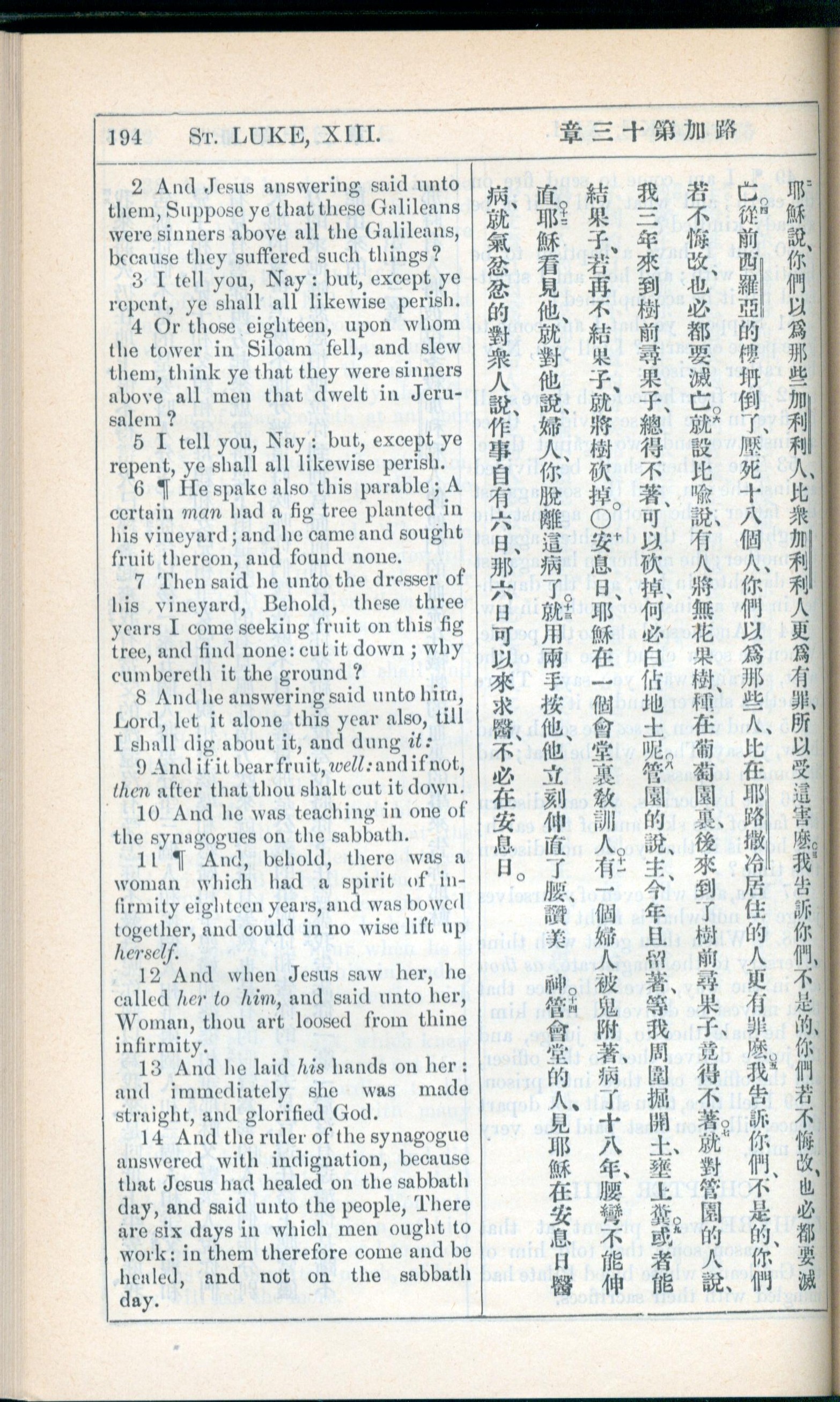 1908年新約全書(中西字) 路加福音 13 章 2 節到 13 章 14 節