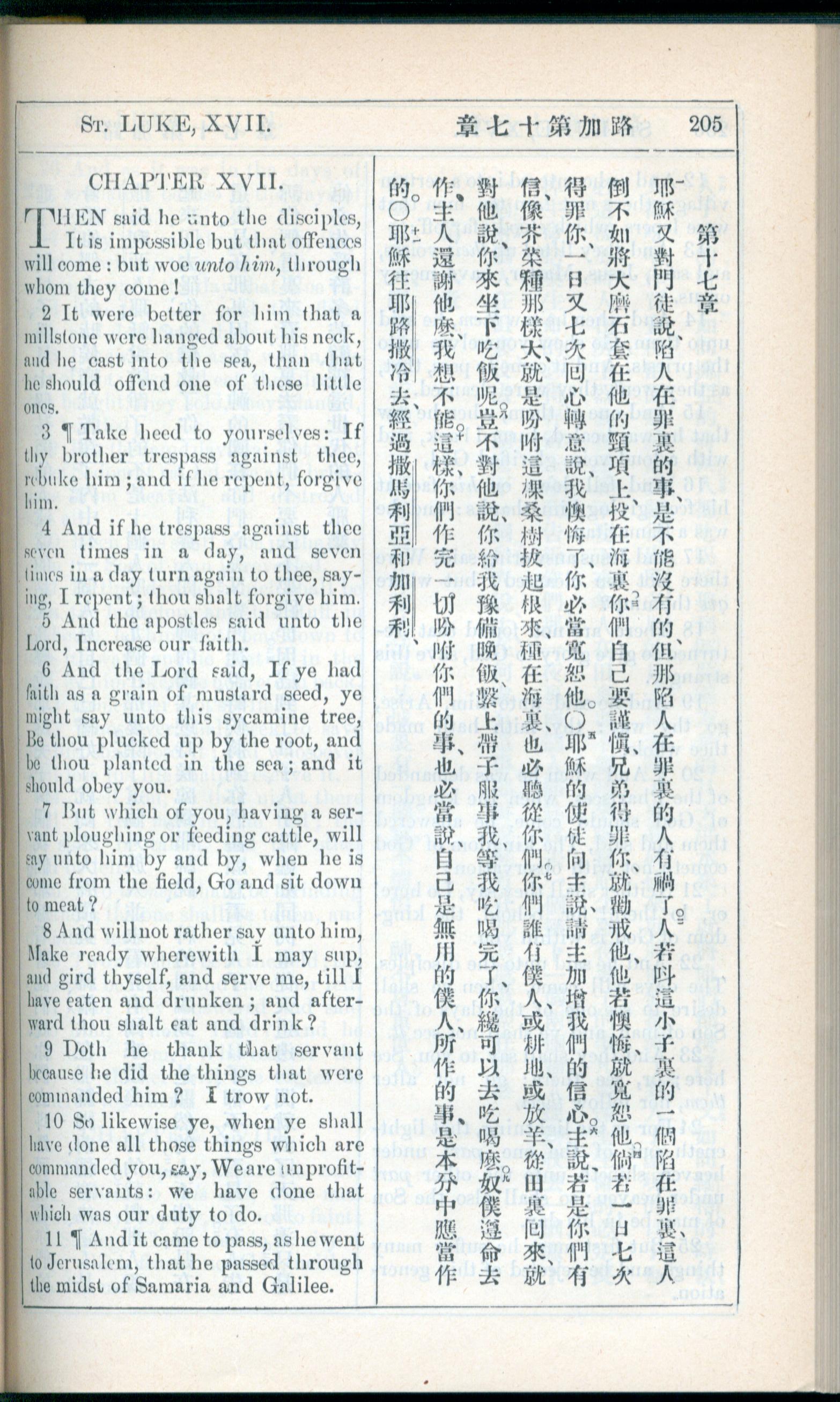 1908年新約全書(中西字) 路加福音 17 章 1 節到 17 章 11 節
