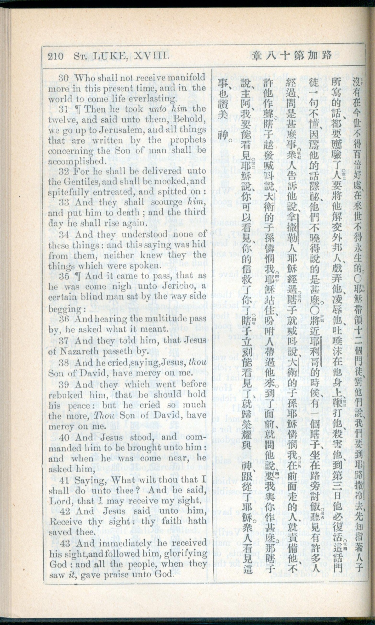 1908年新約全書(中西字) 路加福音 18 章 30 節到 18 章 43 節
