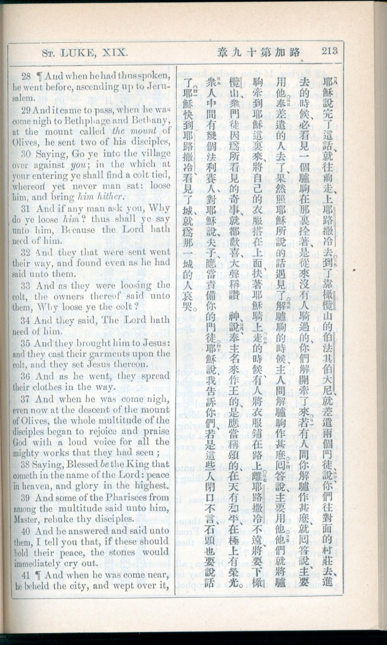 1908年新約全書(中西字) 路加福音 19 章 28 節到 19 章 41 節