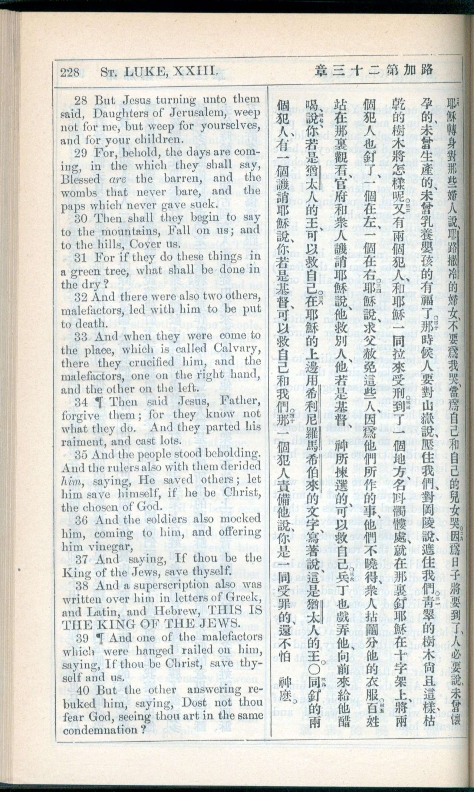 1908年新約全書(中西字) 路加福音 23 章 28 節到 23 章 40 節