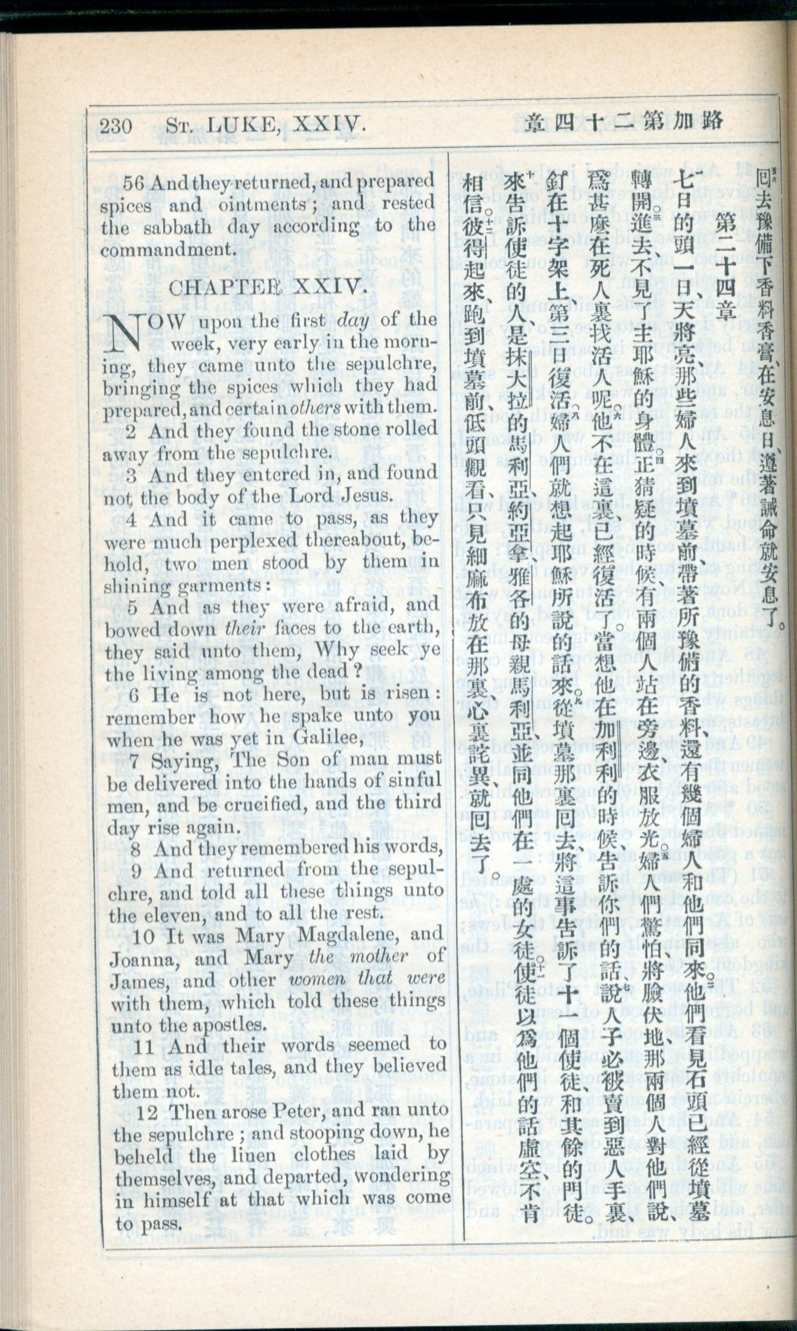 1908年新約全書(中西字) 路加福音 23 章 56 節到 24 章 12 節