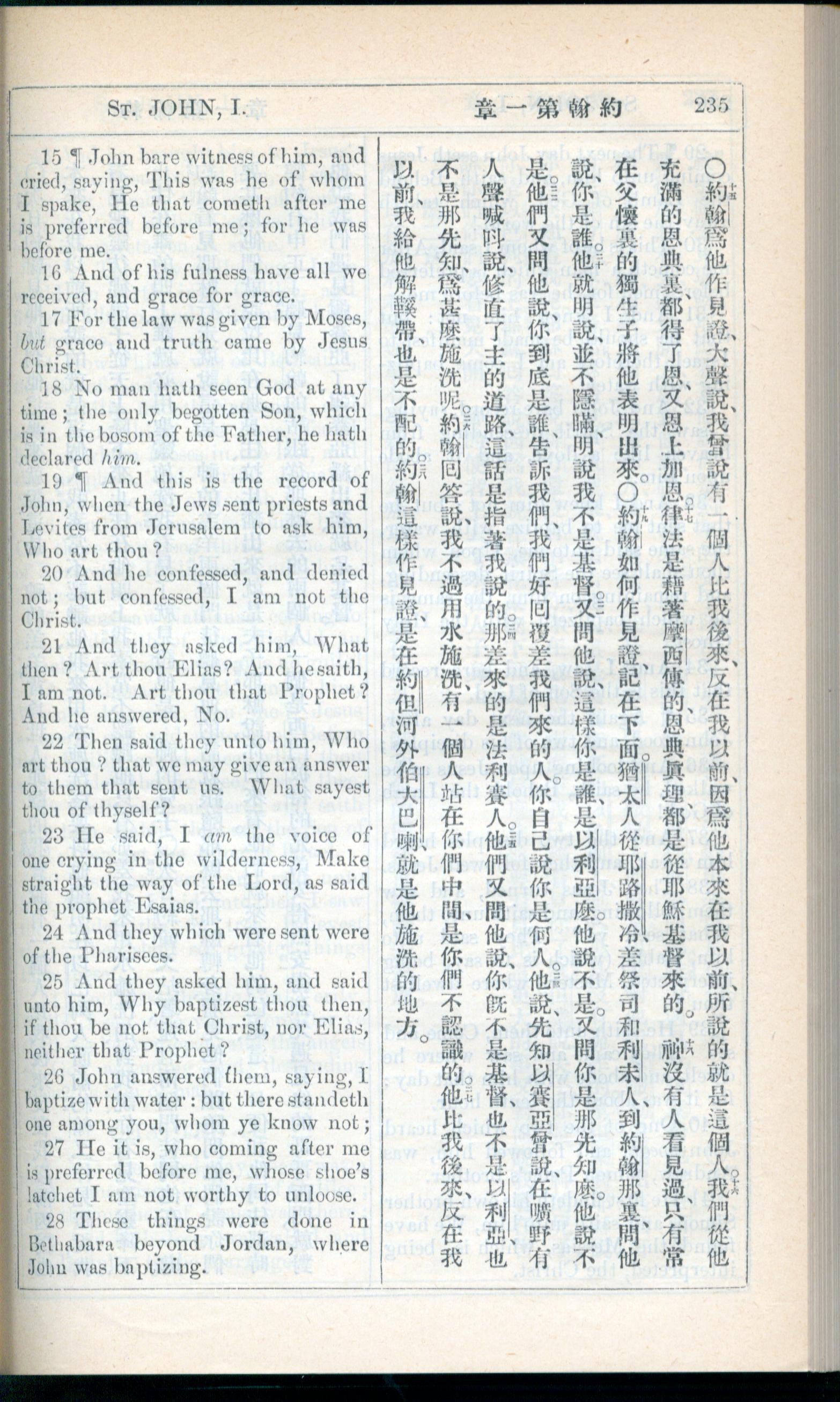 1908年新約全書(中西字) 約翰福音 1 章 15 節到 1 章 28 節