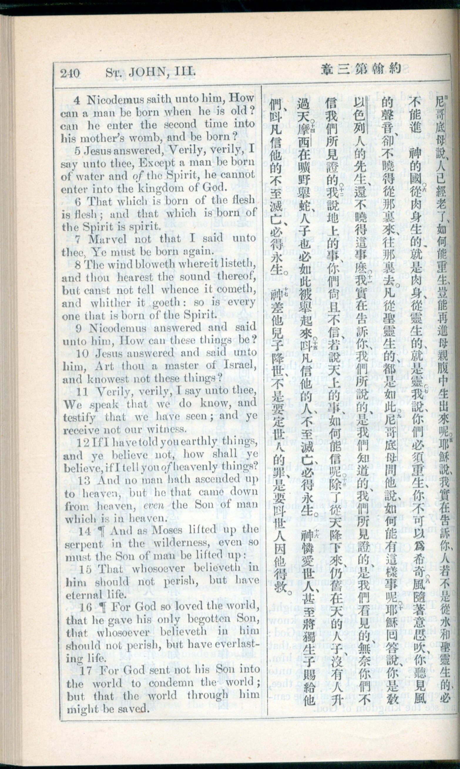 1908年新約全書(中西字) 約翰福音 3 章 4 節到 3 章 17 節