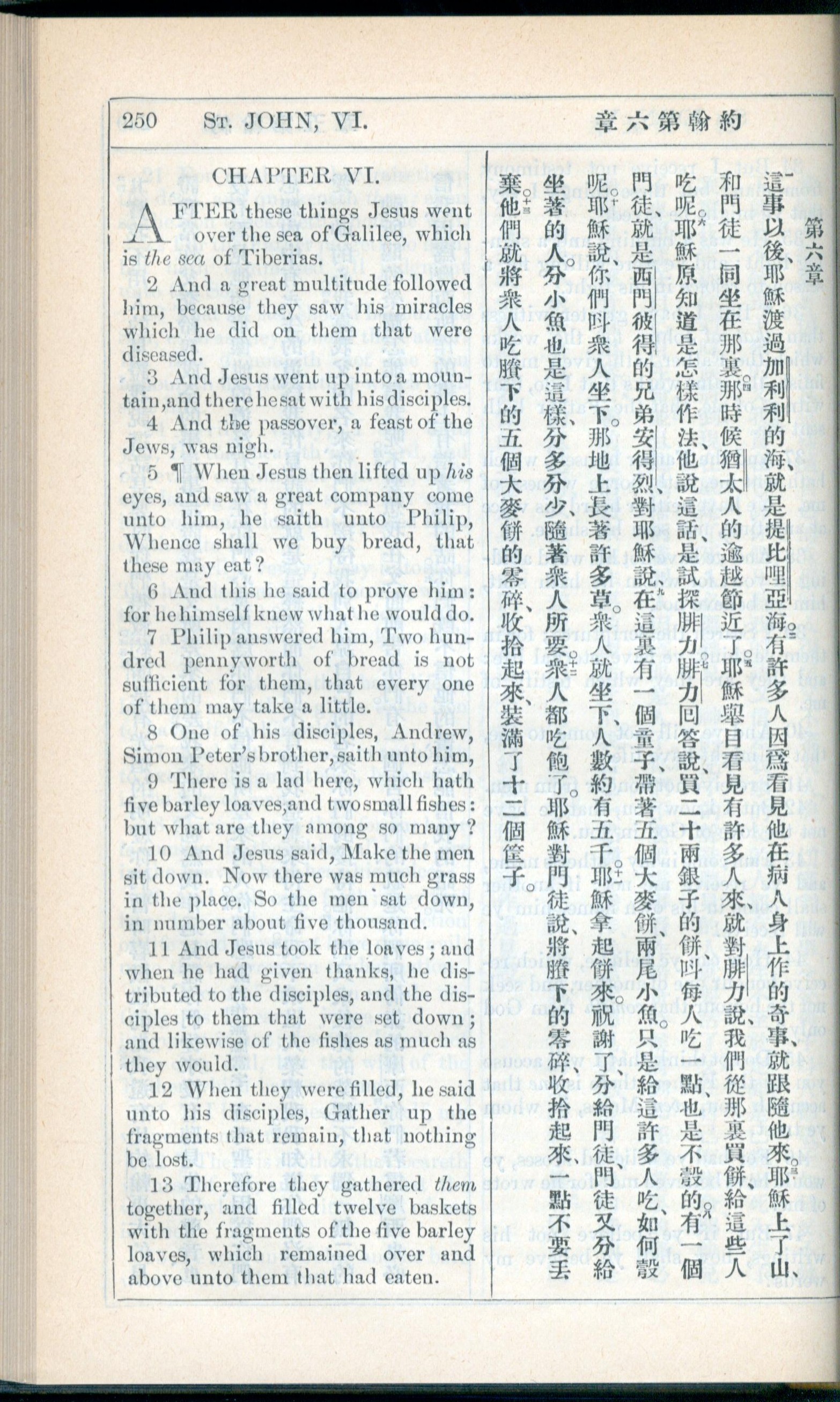 1908年新約全書(中西字) 約翰福音 6 章 1 節到 6 章 13 節