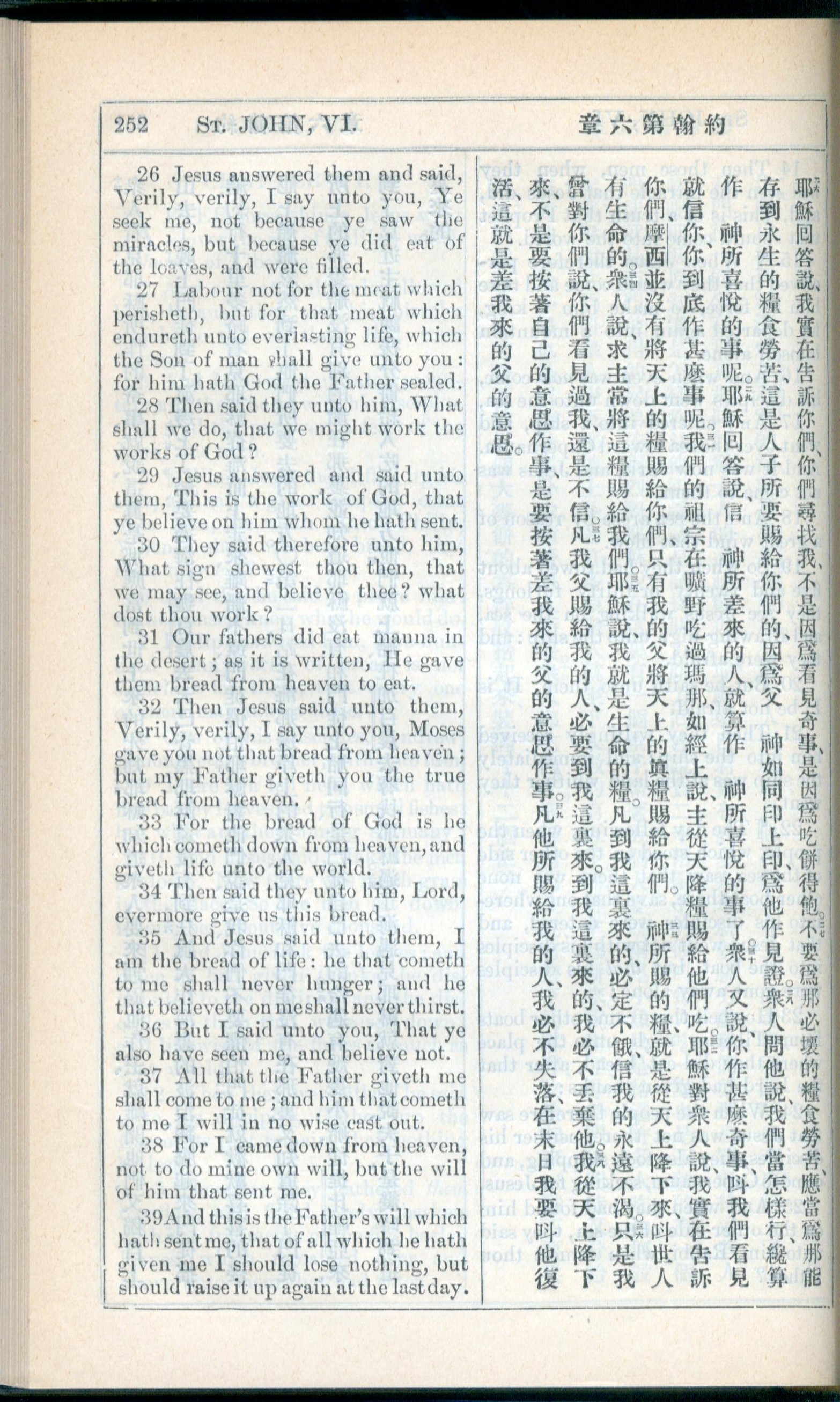 1908年新約全書(中西字) 約翰福音 6 章 26 節到 6 章 39 節