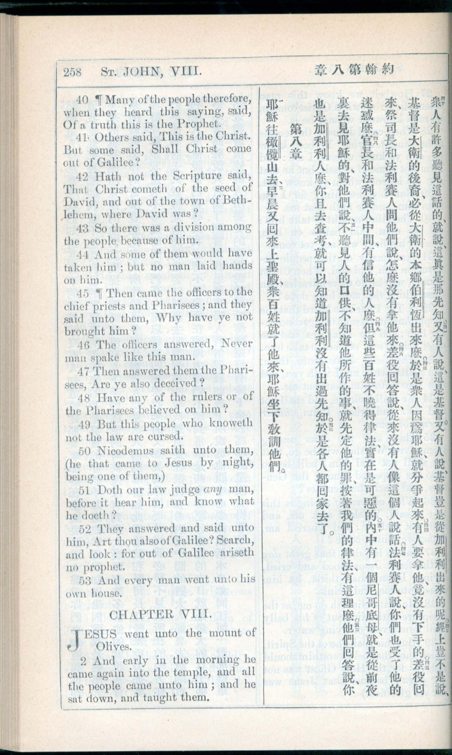 1908年新約全書(中西字) 約翰福音 7 章 40 節到 8 章 2 節